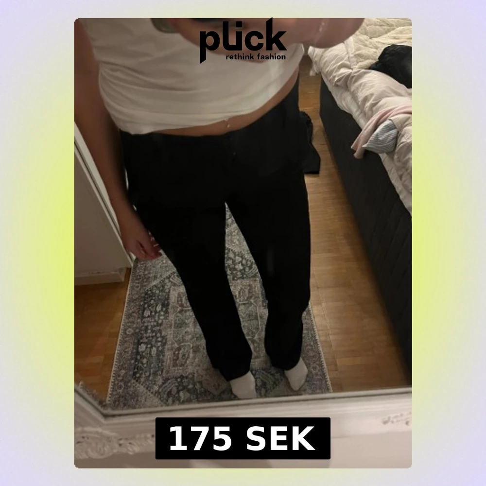 Säljer mina svarta lågmidjade kostymbyxor från BikBok i modellen Vera med slit. älskar dem men tyvärr blivit för små.