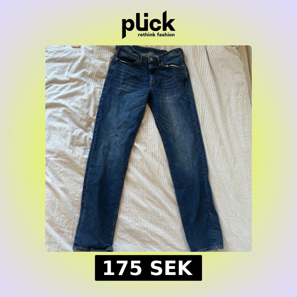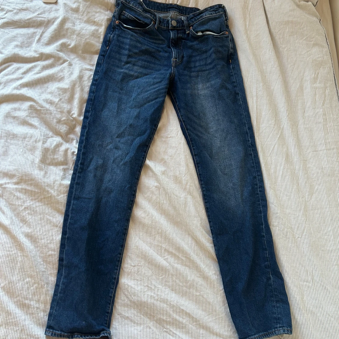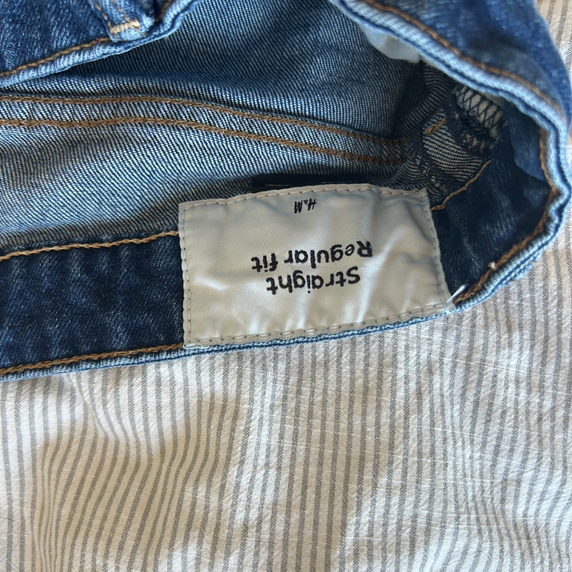 Snygga blå jeans från H&M i straight regular fit. Klassisk femficksmodell med normal passform och raka ben. Jeansen har en mörkblå tvätt och är tillverkade i bomull. Perfekta för en avslappnad och stilren look.