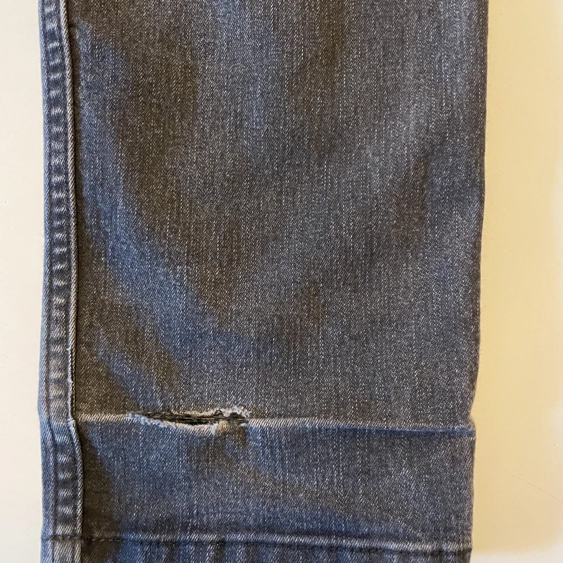 Ett par svarta replay jeans. Jeansen har ett hål på varje ben nere vid hälen. De går absolut att använda men de är lite slitna.