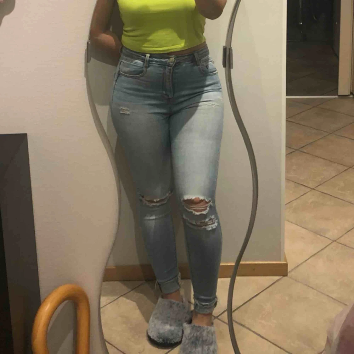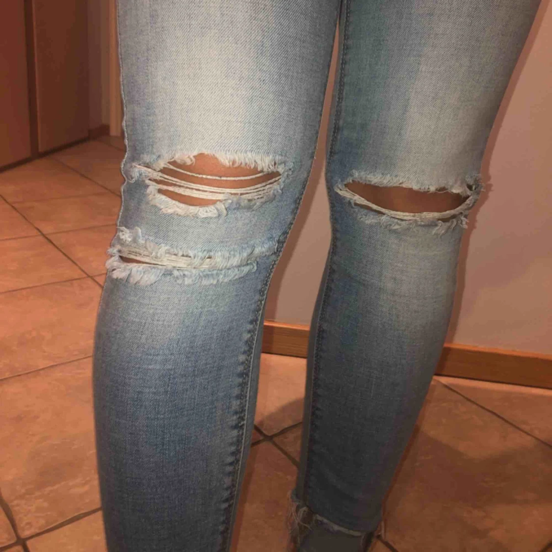 Jeans med hål från Stradivarius, köptes i Krakow, Polen! Säljer de då dom har blivit för små!✨ köparen står för frakten!