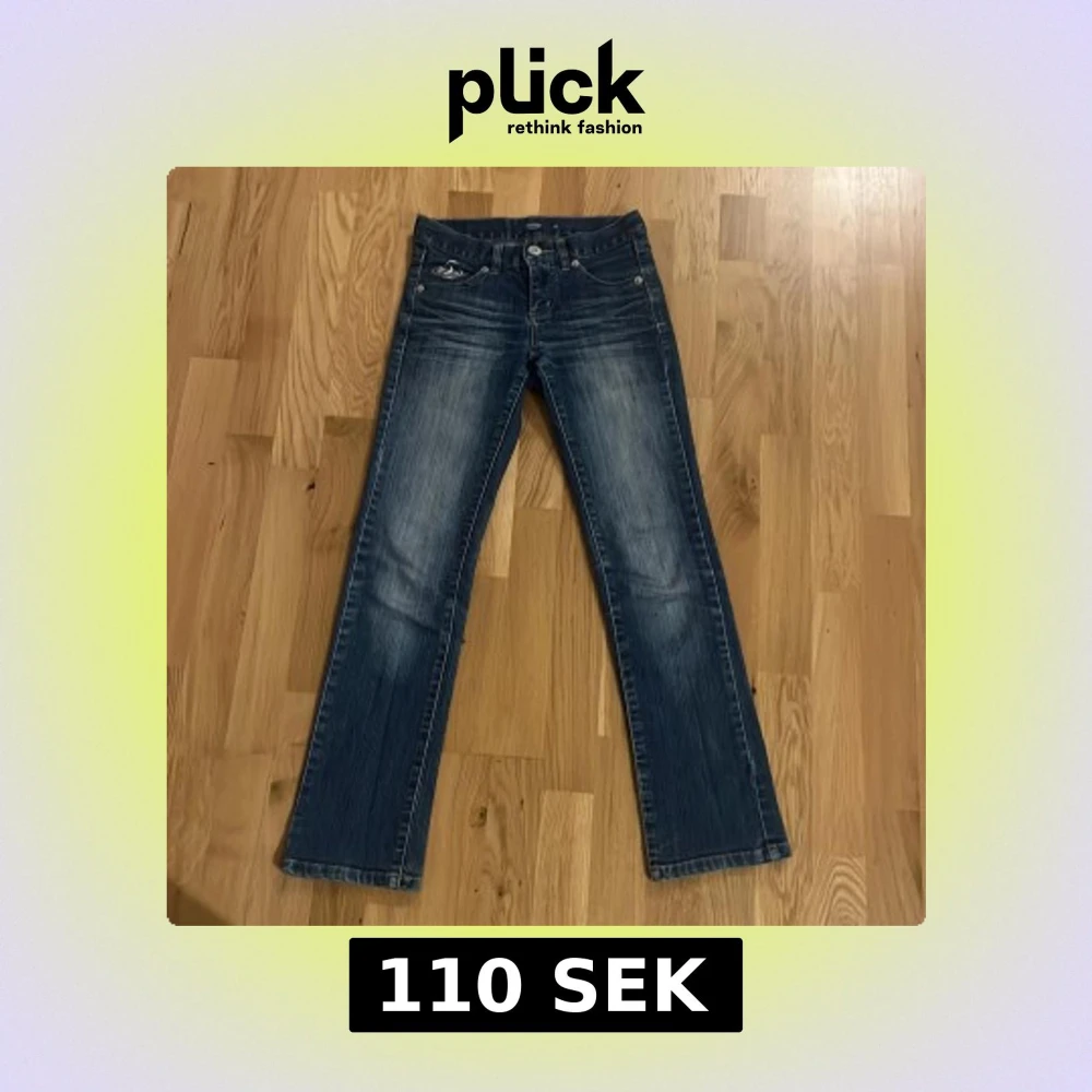 Snygga blå jeans från Comp. by KappAhl i storlek 146. Modellen har bootcut-ben, klassisk femficksdesign och coola slitningar framtill. Jeansen har broderad detalj på fickan och knappar med logga. Perfekta för dig som gillar en cool stil! Anndvända få gånger
