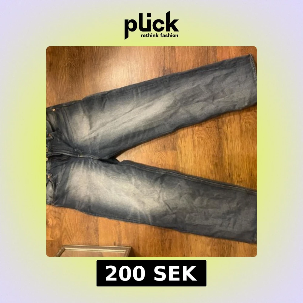 Säljer ett par blå baggy jeans från H&M med en loose passform. De har en klassisk design med fem fickor och knappgylf. Perfekta för baggy/skate stil