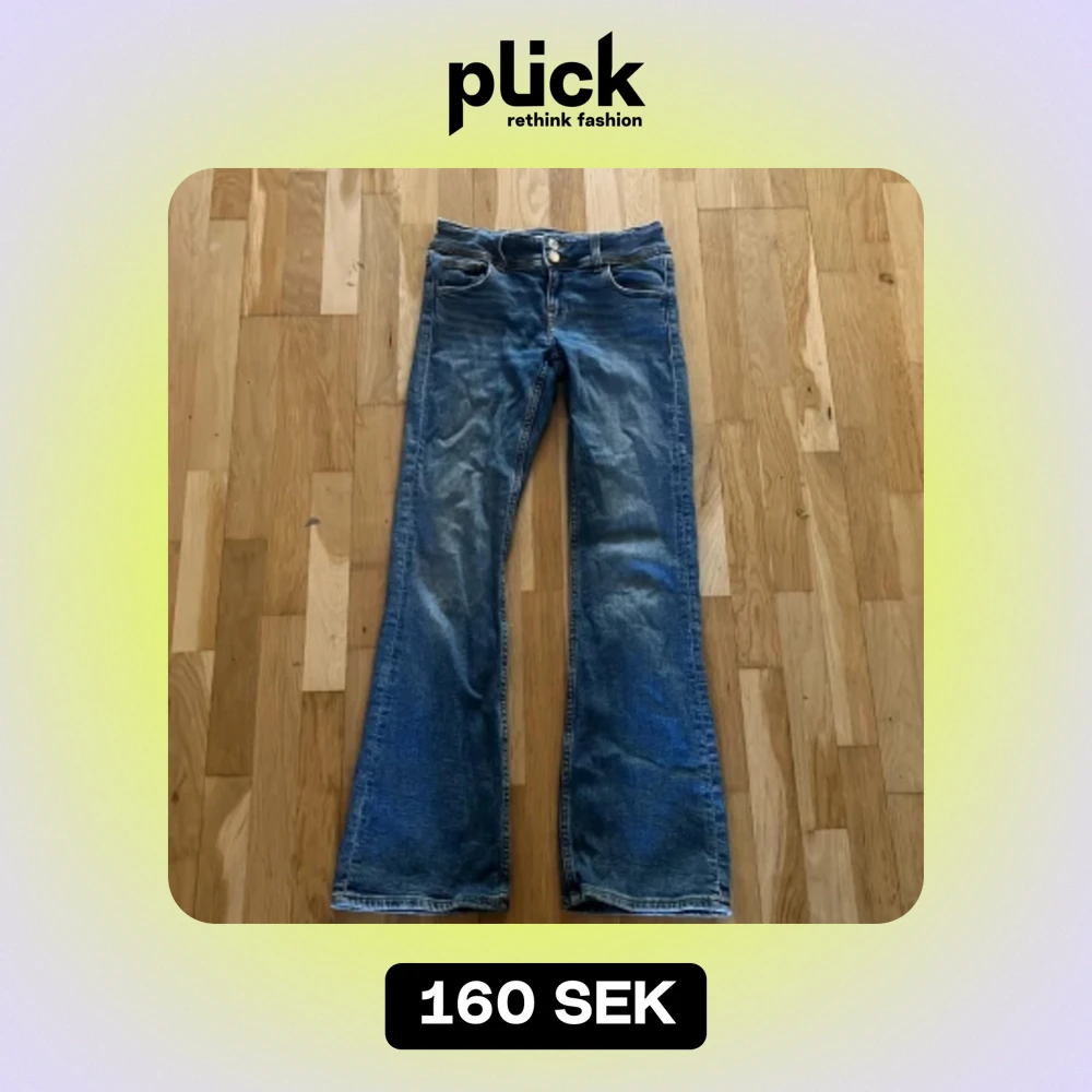 Blå bocut jeans med två knapar och fickor man kan knäppa där bak Dom är bra skick men säljer dom för att dom är förkorta för mig