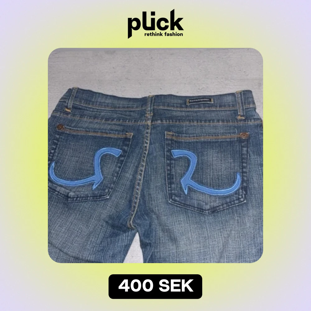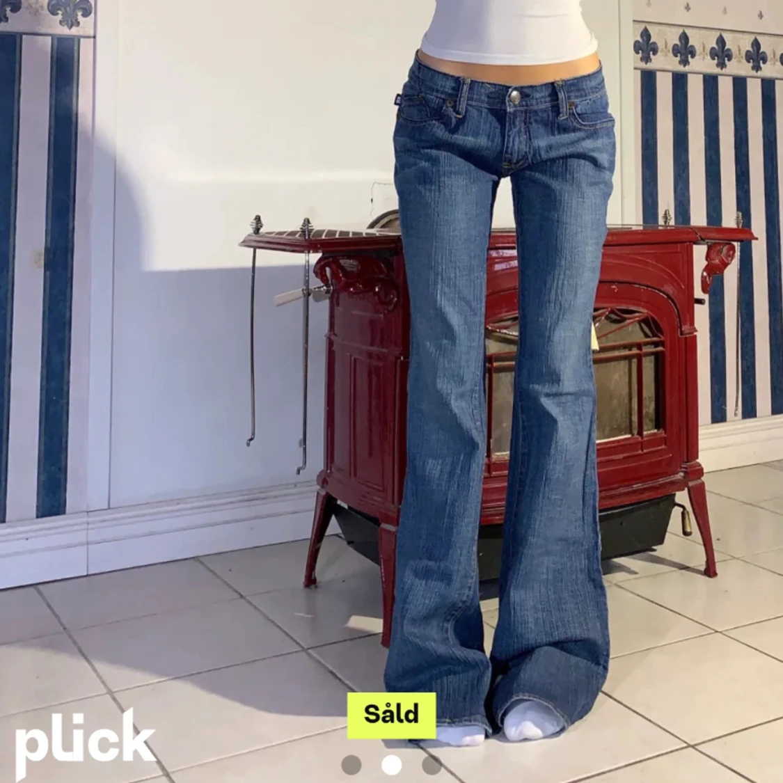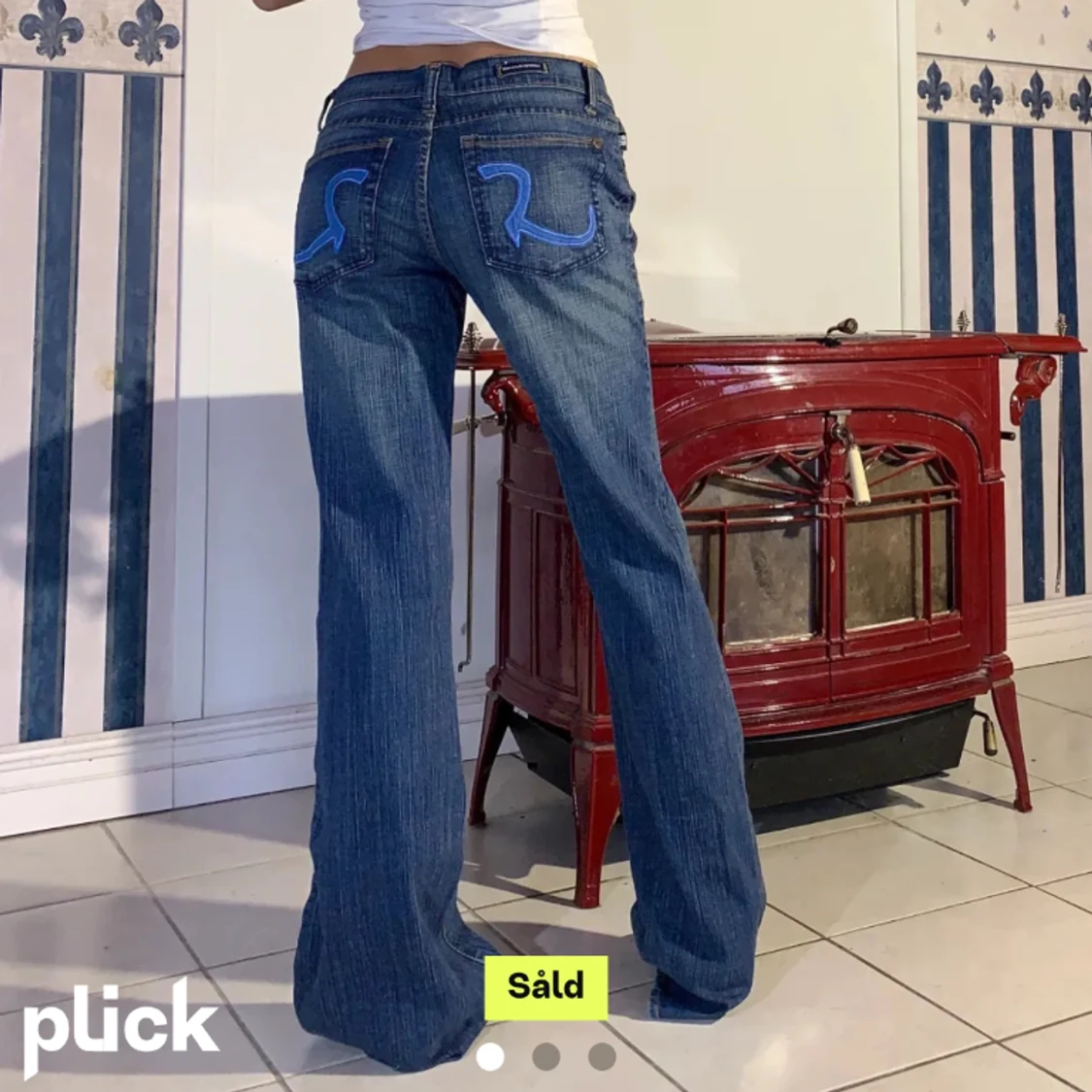 Snygga vintage jeans De är bootcut och har snygga detaljer på fickorna Midja 89cm, innerben 90cm Köpta på Plick men bra skick utan defekter Säljer då de är för stora Köpta för 700kr Köpare står för frakt