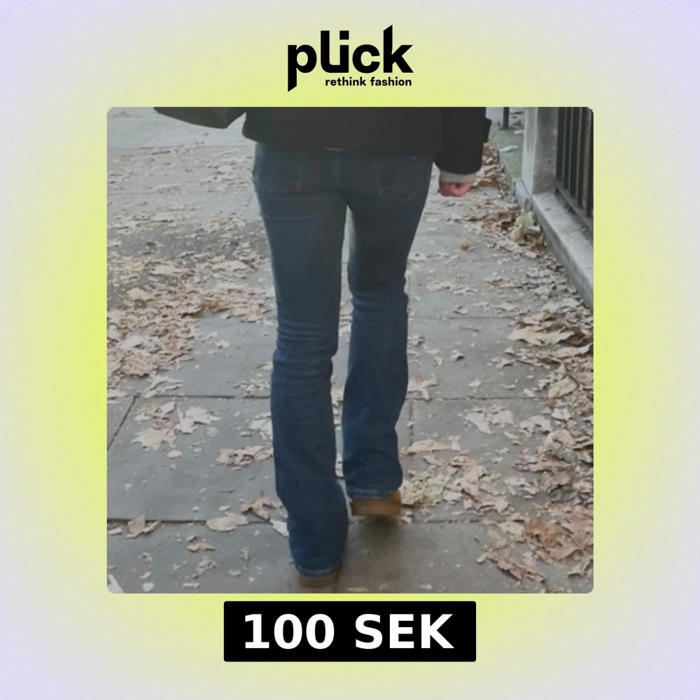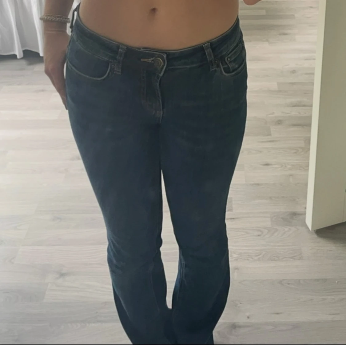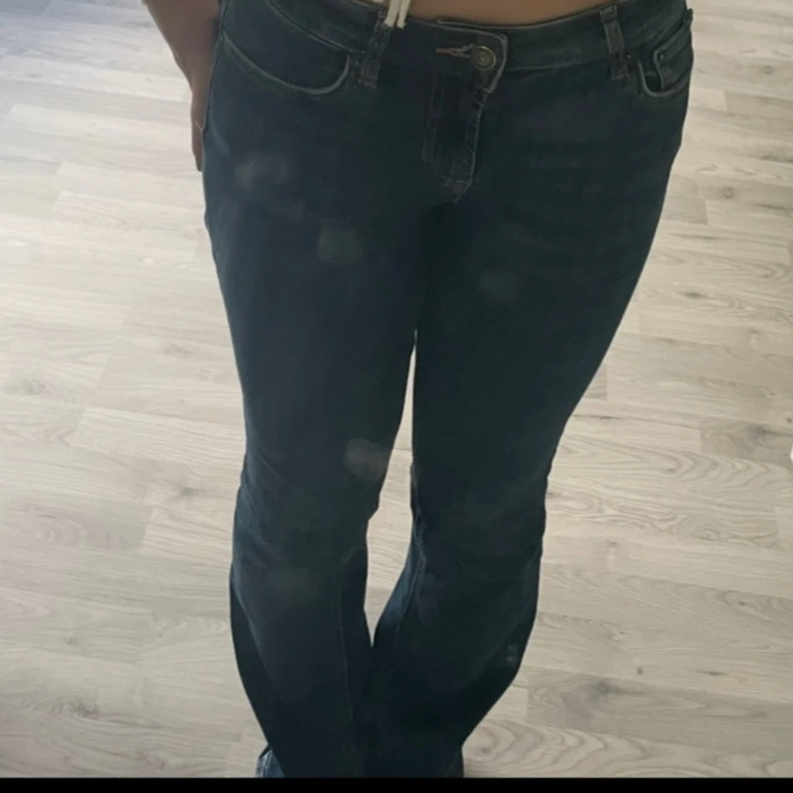 Säljer blå bootcut jeans med låg midja. Har ett litet hål i fickan men inget som stör och hålet går bara igenom till fickan man ser alltså inte igenom hela jeansen🥰