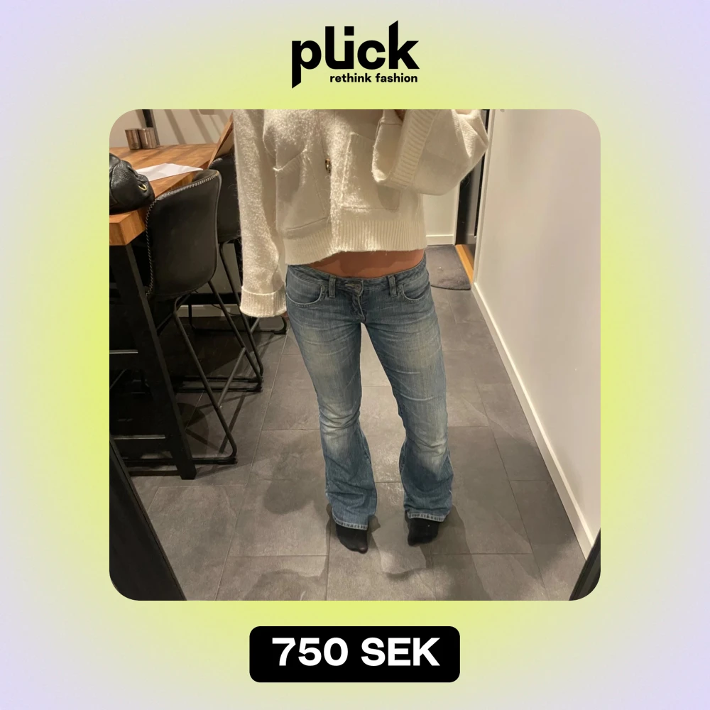 Säljer ett par assnygga blå bootcut jeans i bra skick. Innerbenslängd 77cm och midjemått 37cm. Pris kan diskuteras vid snabb affär, skriv om ni har några frågor!💕