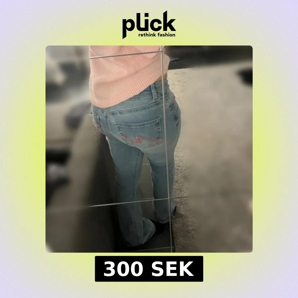 Säljer mina blå bootcut jeans med rosa detaljer på bakfrickorna! De är som nya! Storlek 36.🫶🏻