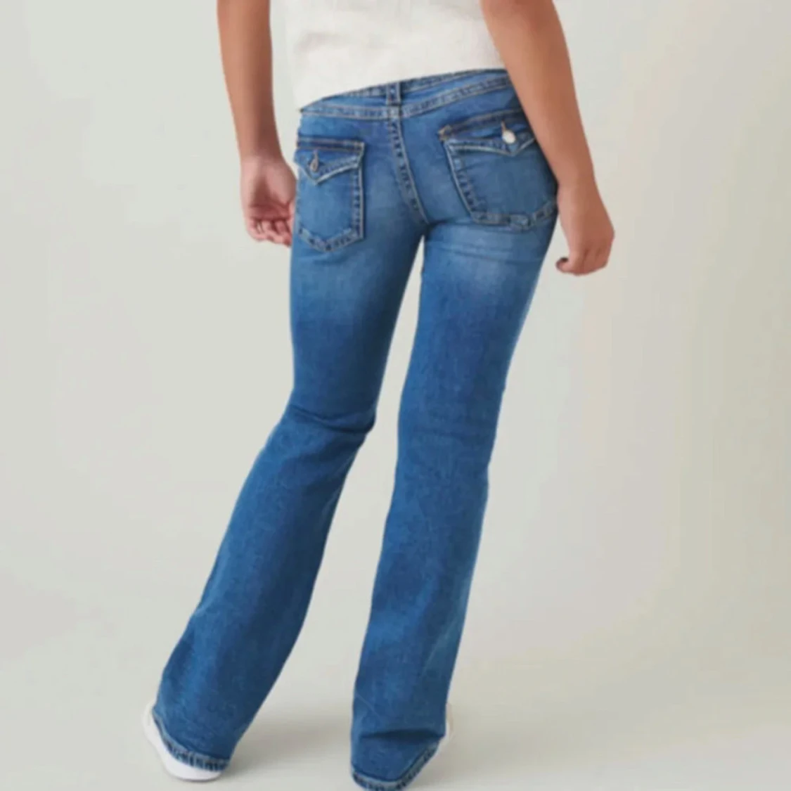 Klassiska blå jeans med bootcut passform och normal midja. Jeansen har fem fickor och snygga sömmar, samt lätt slitning framtill och baktill för en avslappnad look. Perfekta till vardags med en enkel topp eller hoodie. Hål vid zippen