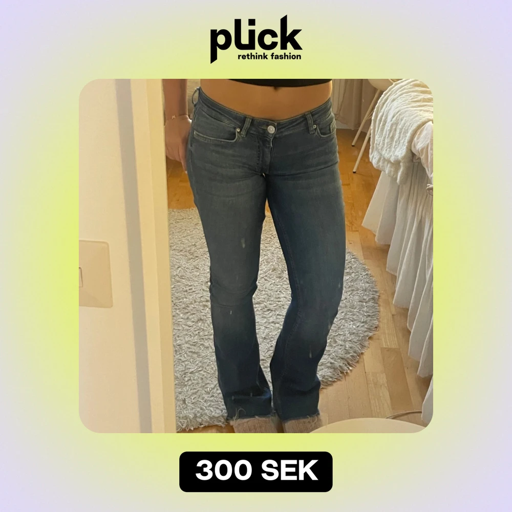 Säljer ett par snygga blå bootcut jeans i bra skick. De är lågmidjade och as snygga, sytt dom lågmidjade själv men inget som syns när de är på! De är storlek S och långa för mig som är 165 💞