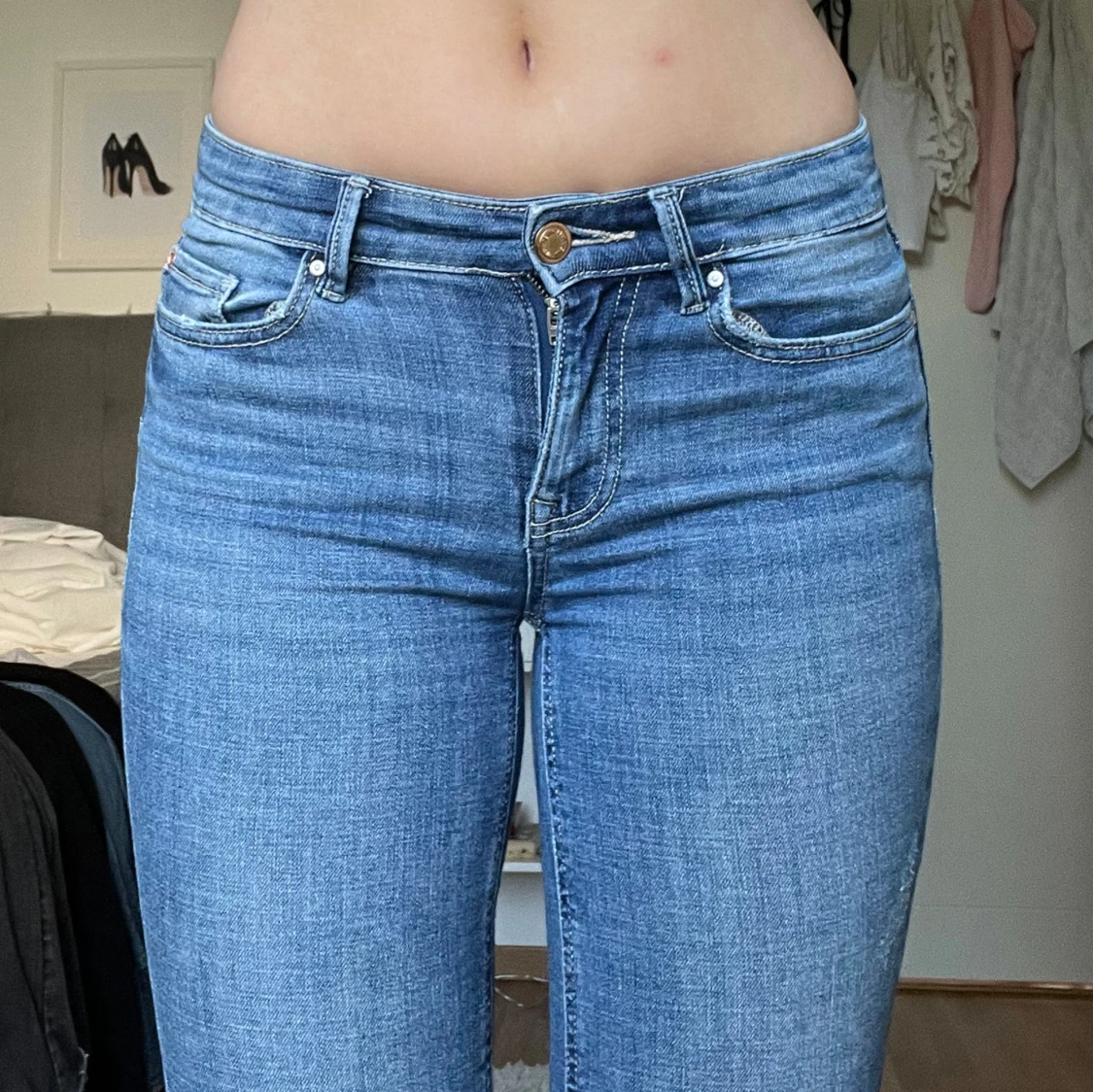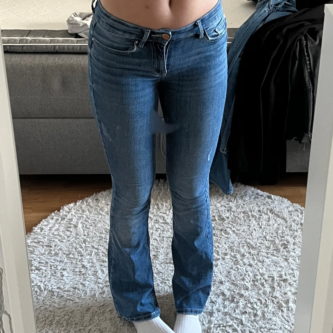 Snygga blå jeans med medelhög midja i ett jätteskönt och stretchigt material. I storlek xs/32 från vero Moda💕