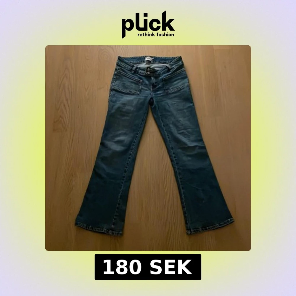 Snygga blå bootcut jeans från Lager 157. Jeansen har låg midja men går lite högre upp bak. Har inte använt så mycket men märks att de är använda. Storlek 40💞