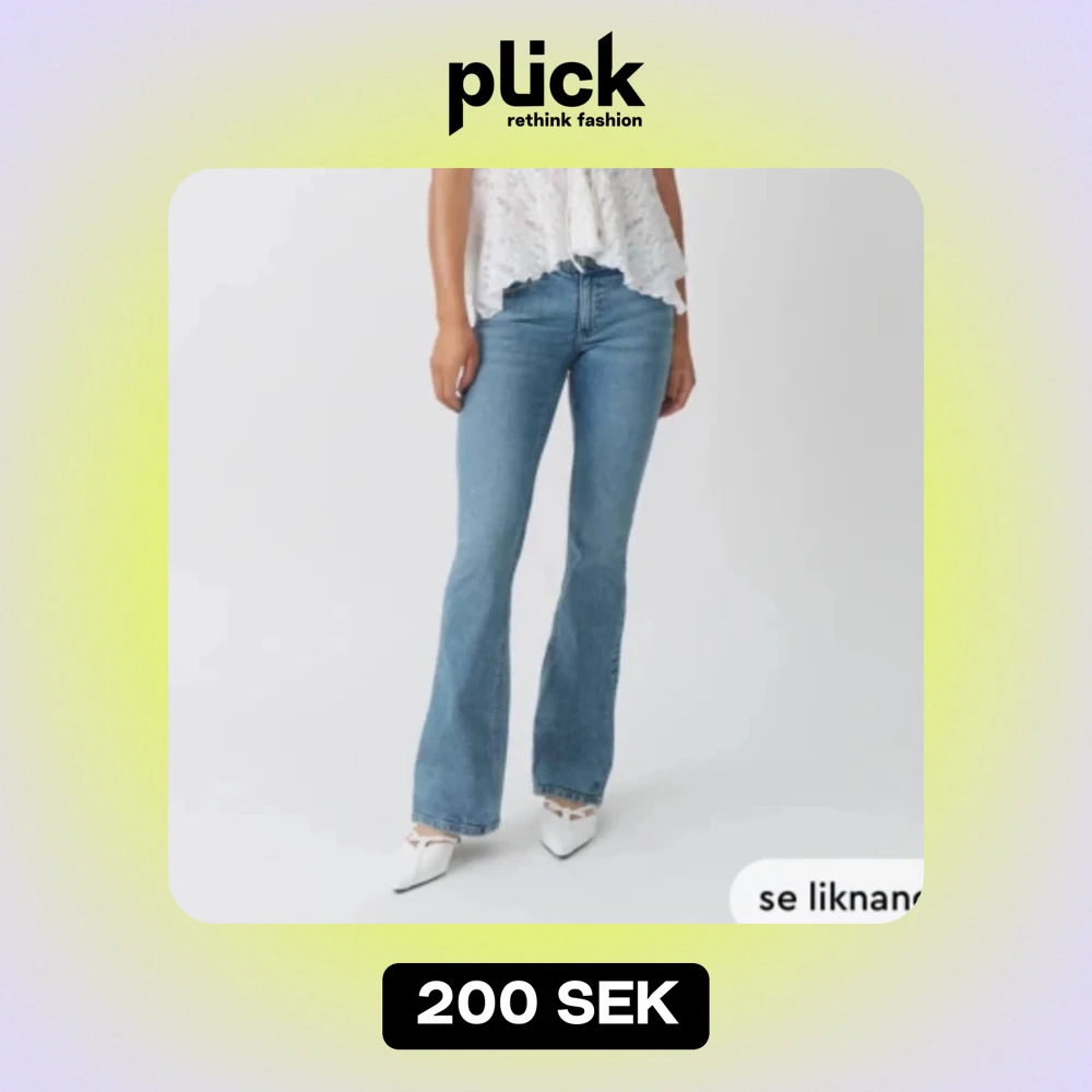 Säljer ett par snygga blå bootcut jeans. De har en klassisk femficksdesign och är i ett mjukt denimtyg. Perfekta för både vardag och fest! OBS! Slitage längs ner, se bild 4. Kan ej fixa egna bilder på då de ej passar 🤗💞