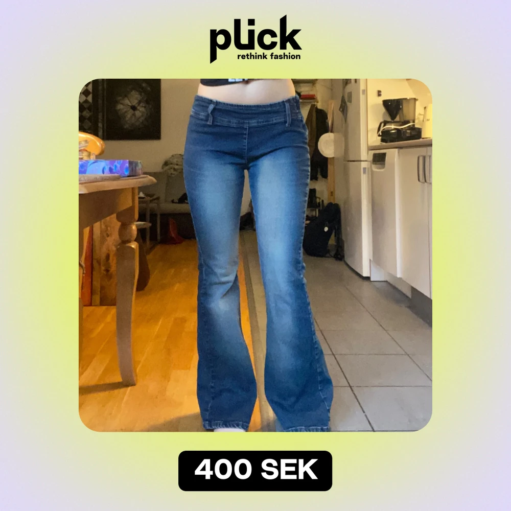 Säljer dessa otroligt snygga bootcut-jeans. Mjuka o lite stretchiga. Lågmidjade. Knäpps med dragkedja i sidan. Midjemått: 82 cm. Innebenslängd: 82 cm. Ytterbenslängd: 105 cm. Jag är 170 o de når marken på mig!
