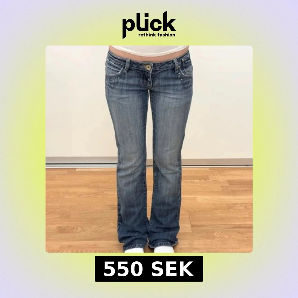 Jätte fina blå jeans med låg midja! Köpta här på plick och bilderna är från den tidigare ägaren! Midjemått: 39. Innerbenslängd: 81💞