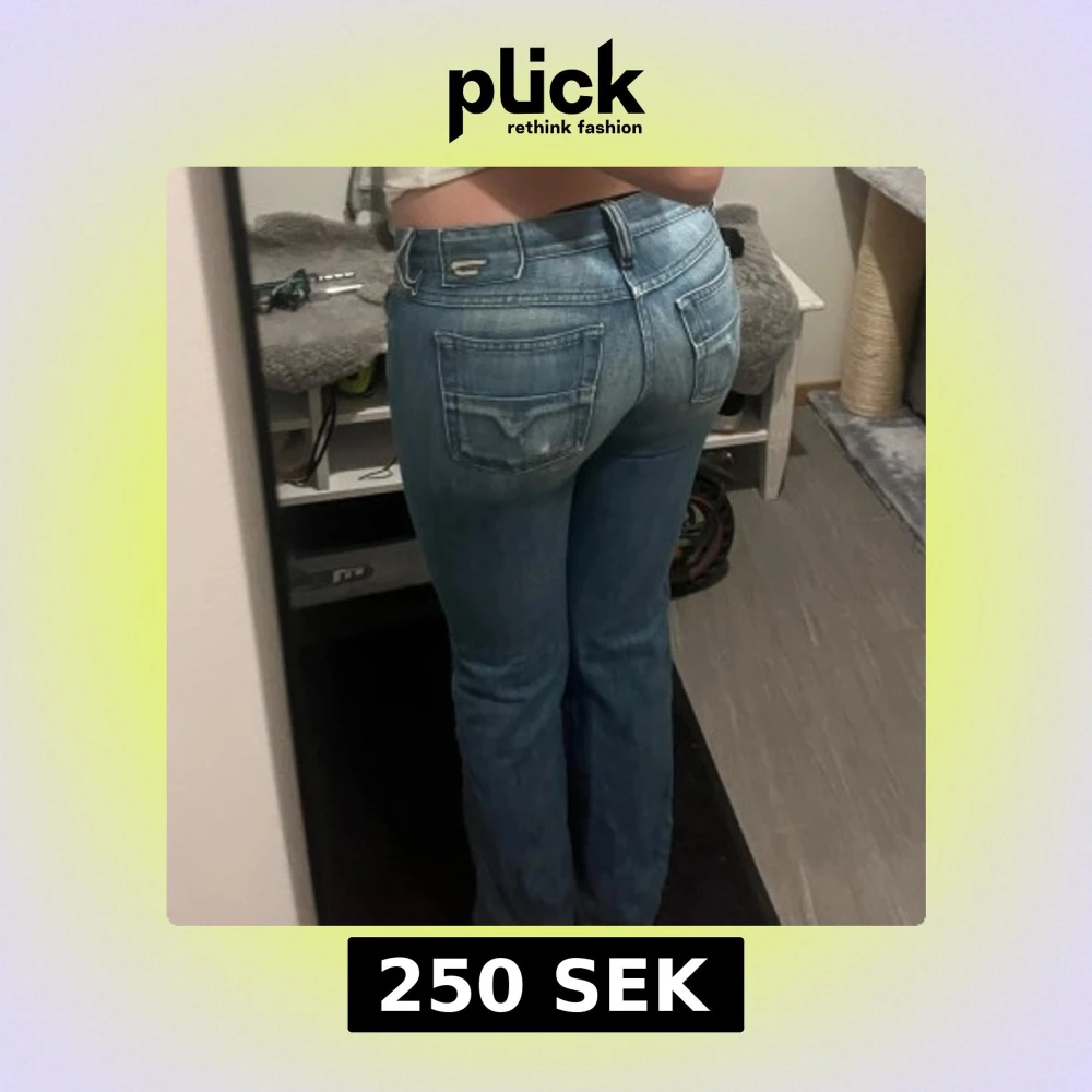 Säljer dessa supersnygga blå lågmidjade diseal jeans. Andvända men inga större defekter, skriv för mått.