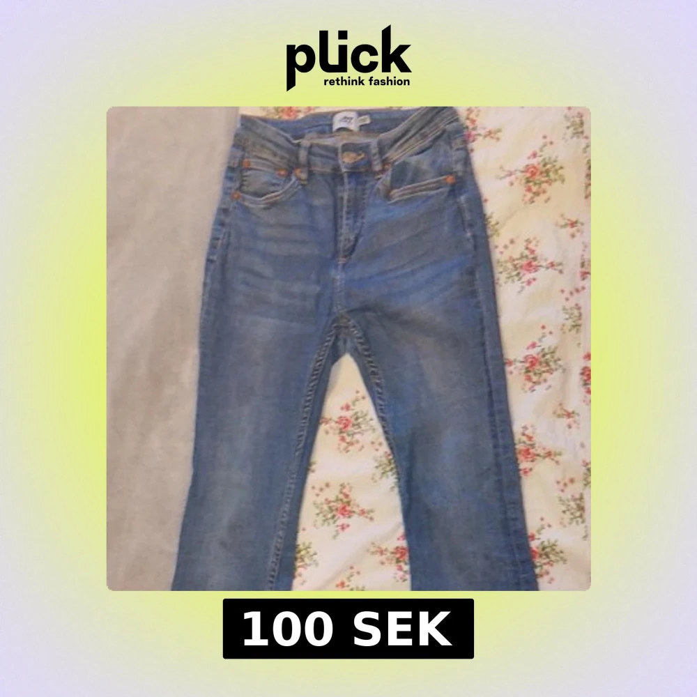 Snygga blå jeans från lager 157. Jeansen har en hög midja och är tillverkade i mjukt denimtyg med lätt tvättad look. Perfekta för dig som gillar en retrostil med lite utsvängda ben. Inte använt mycket💖
