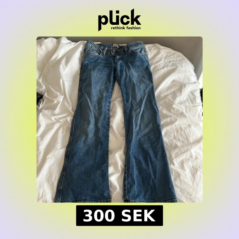 Snygga blå bootcut jeans från Lager 157. Klassisk femficksmodell med normal passform och kortare benlängd (short). Perfekta för dig som gillar en tidlös jeanslook med lite utsvängda ben.