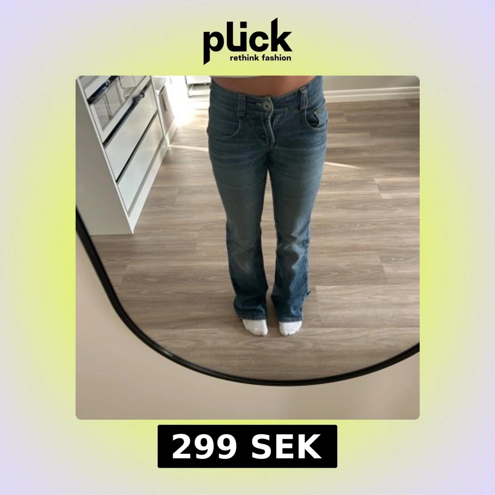 Snygga blå bootcut jeans AJC med dekorativa nitar på fickorna. Jeansen är köpta på Vinted men passade tyvärr inte mig. Det är ett hål i ena fickan som ni kan se på sista bilden men det är enkelt att sy ihop. Jeansen är lågmidjade. Priset kan diskuteras❤️🫰🏻