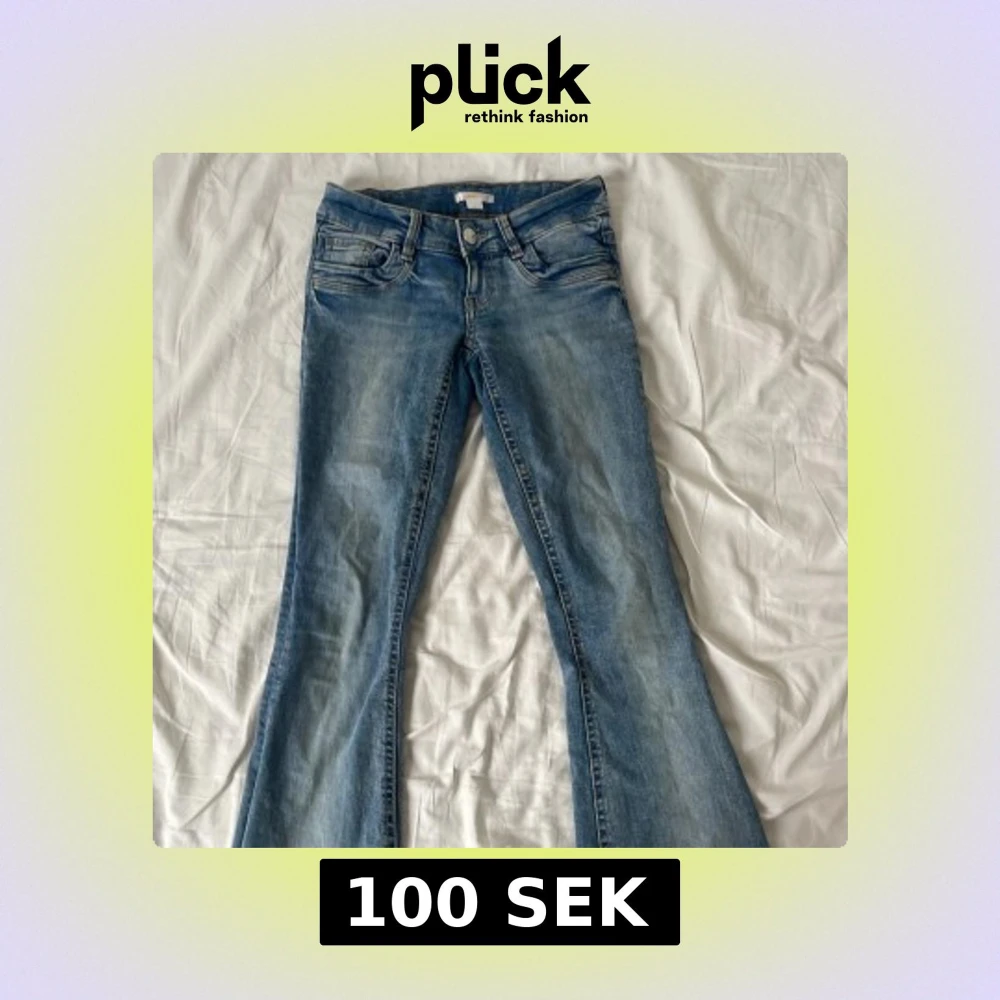 Snygga blå low waist bootcut jeans från Gina Tricot i klassisk denim med ljus tvätt. Femficksmodell med dragkedja och knapp framtill. Köpta i vintras och har super bra skick