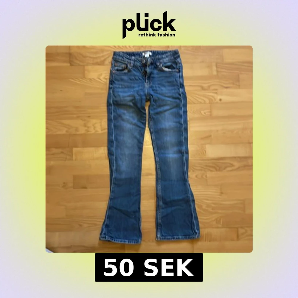 Snygga blå jeans från Gina Tricot i storlek 146. Modellen har klassisk femficksdesign, normalhög midja och bootcut-ben. Jeansen är i mjukt denimtyg med lätt slitningar och kontrastsömmar. Perfekta för en avslappnad och trendig look.