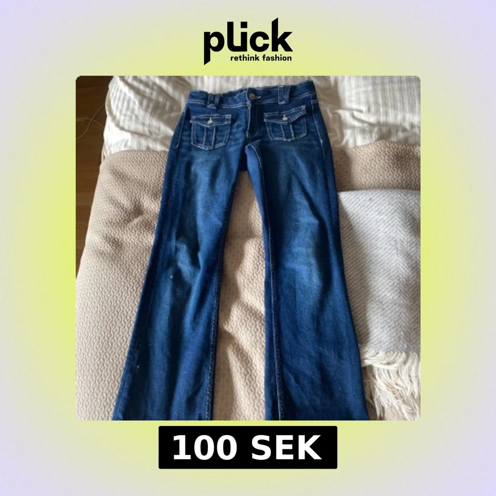 Snygga blå jeans från Gina Tricot i bootcut-modell med markerade sömmar och coola fickdetaljer fram. Klassisk femficksdesign och normal passform. Perfekta för dig som gillar en tidlös jeanslook med lite extra attityd.