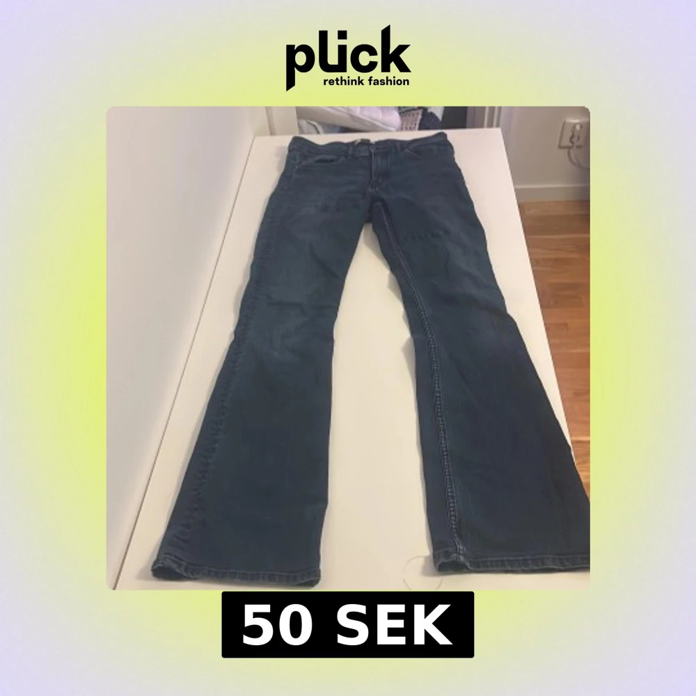 Snygga blå jeans från H&M i klassisk bootcut-modell. Jeansen har normal passform och är tillverkade i ett mjukt denimtyg som sitter skönt. Perfekta för dig som gillar en tidlös look med lite utsvängda ben.