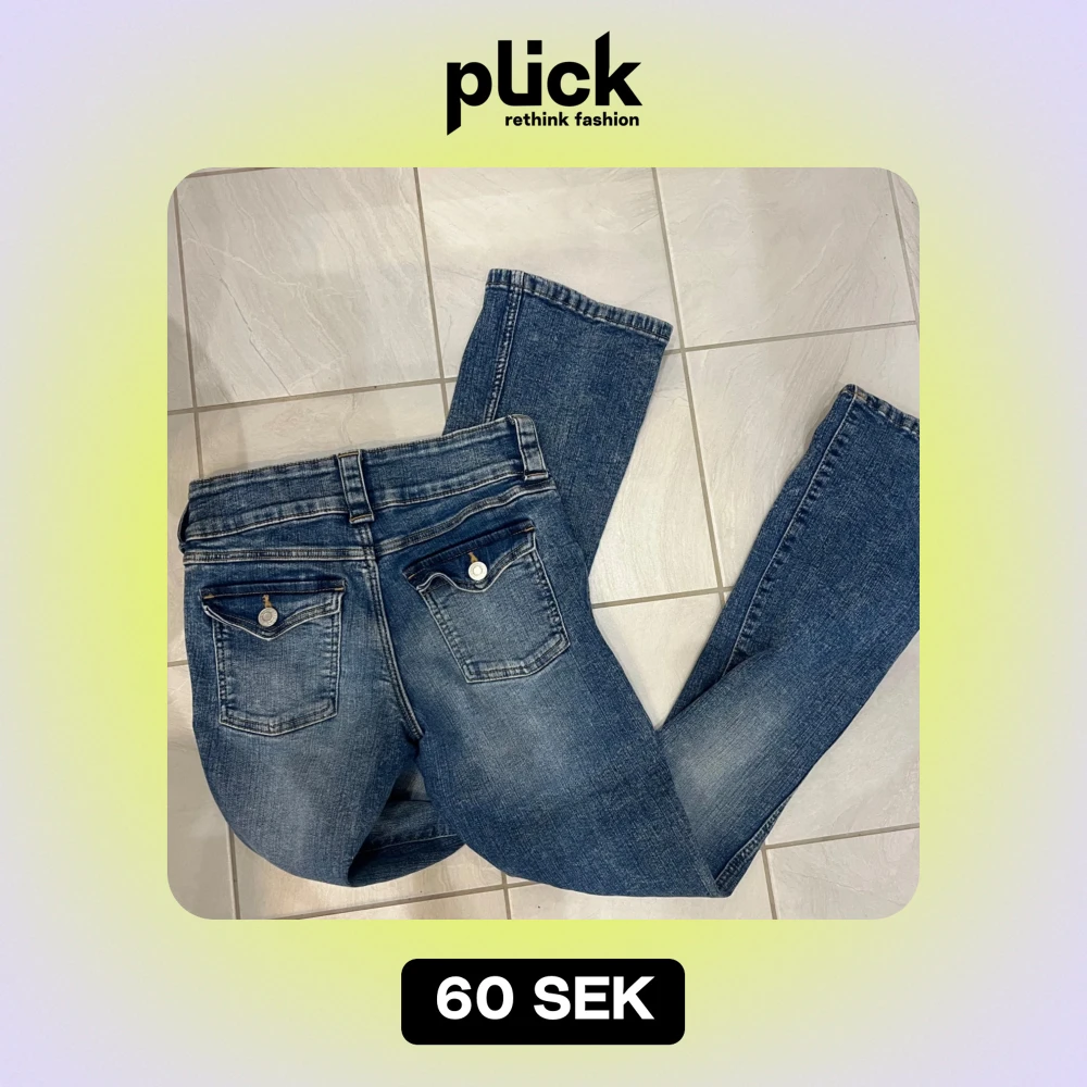 Säljer ett par snygga blå bootcut jeans från H&M i storlek EUR 158. De har låg midja och justerbar midja för perfekt passform. Jeansen är i bra skick och passar perfekt för en avslappnad stil. Perfekta för både vardag och fest! Lågmidjade❤️