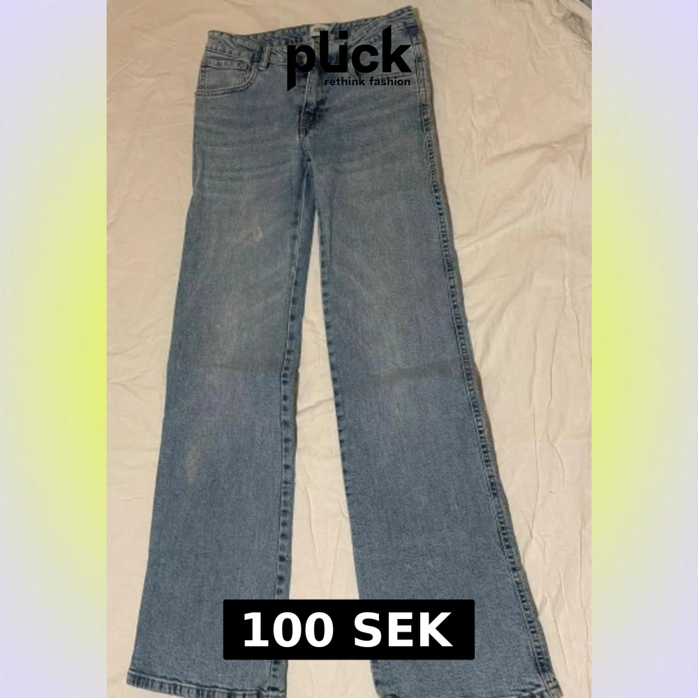 Snygga ljusblå jeans från Lager 157 med klassisk femficksdesign och en bakficka med lock och knapp. Modellen har bootcut-ben och normal passform, perfekt för dig som gillar retrovibbar. Jeansen är tillverkade i jeansmaterial och har en rak låg midja.