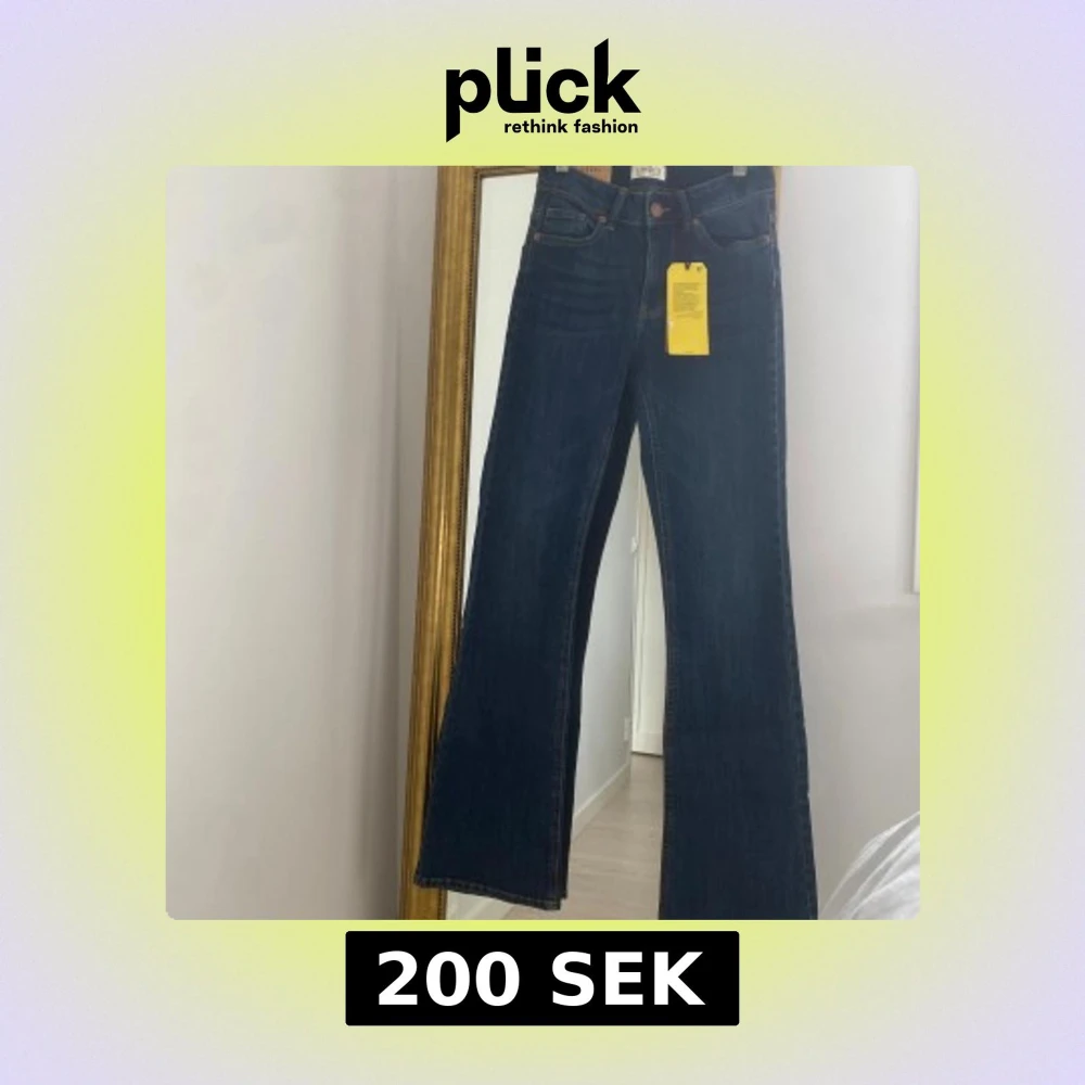 Snygga blå bootcut jeans från Lindex helt oanvänd , i modell Karen. De har en hög midja och klassisk femficksdesign med knapp och dragkedja framtill. Perfekta för en stilren look.