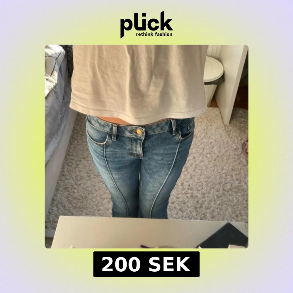 Snygga blå bootcut jeans från Lindex med sträck/rand på benen. Lowrise och superfina för höst🤍🧡