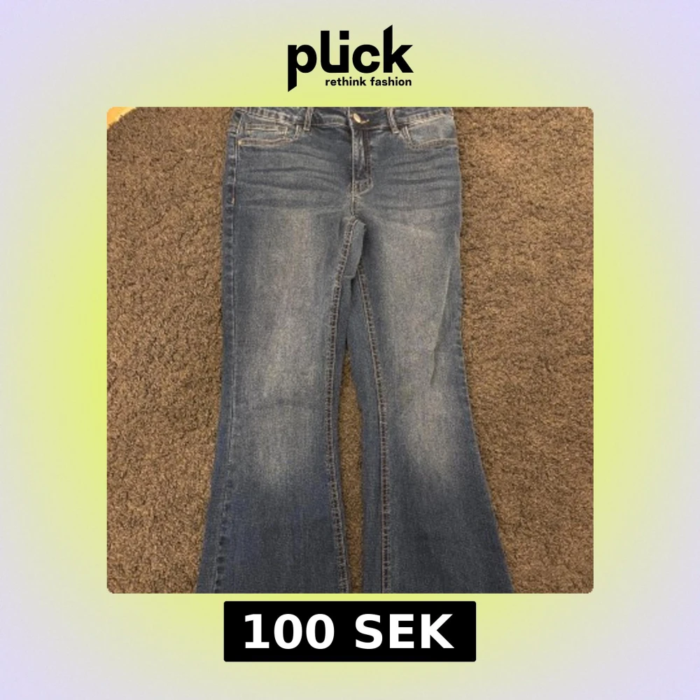 Säljer ett par klassiska blå bootcut jeans från LMTD i storlek XS/S. Jeansen har fem fickor, knapp och dragkedja framtill samt snygga slitningar för en trendig look. Lowaist!! 💞