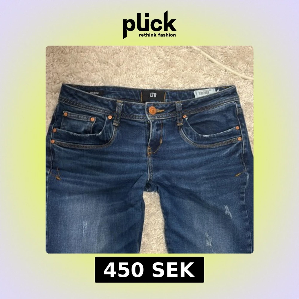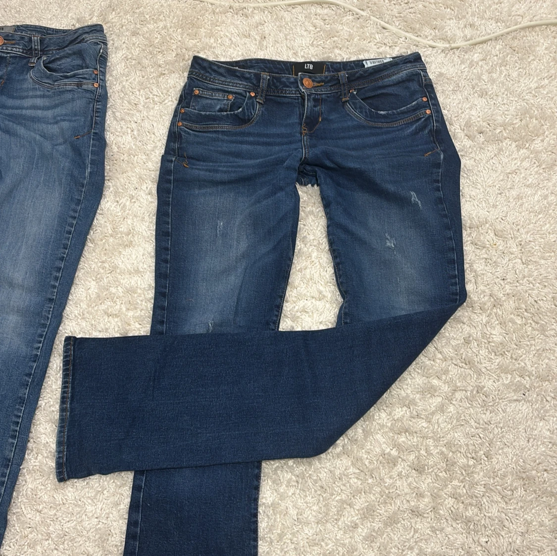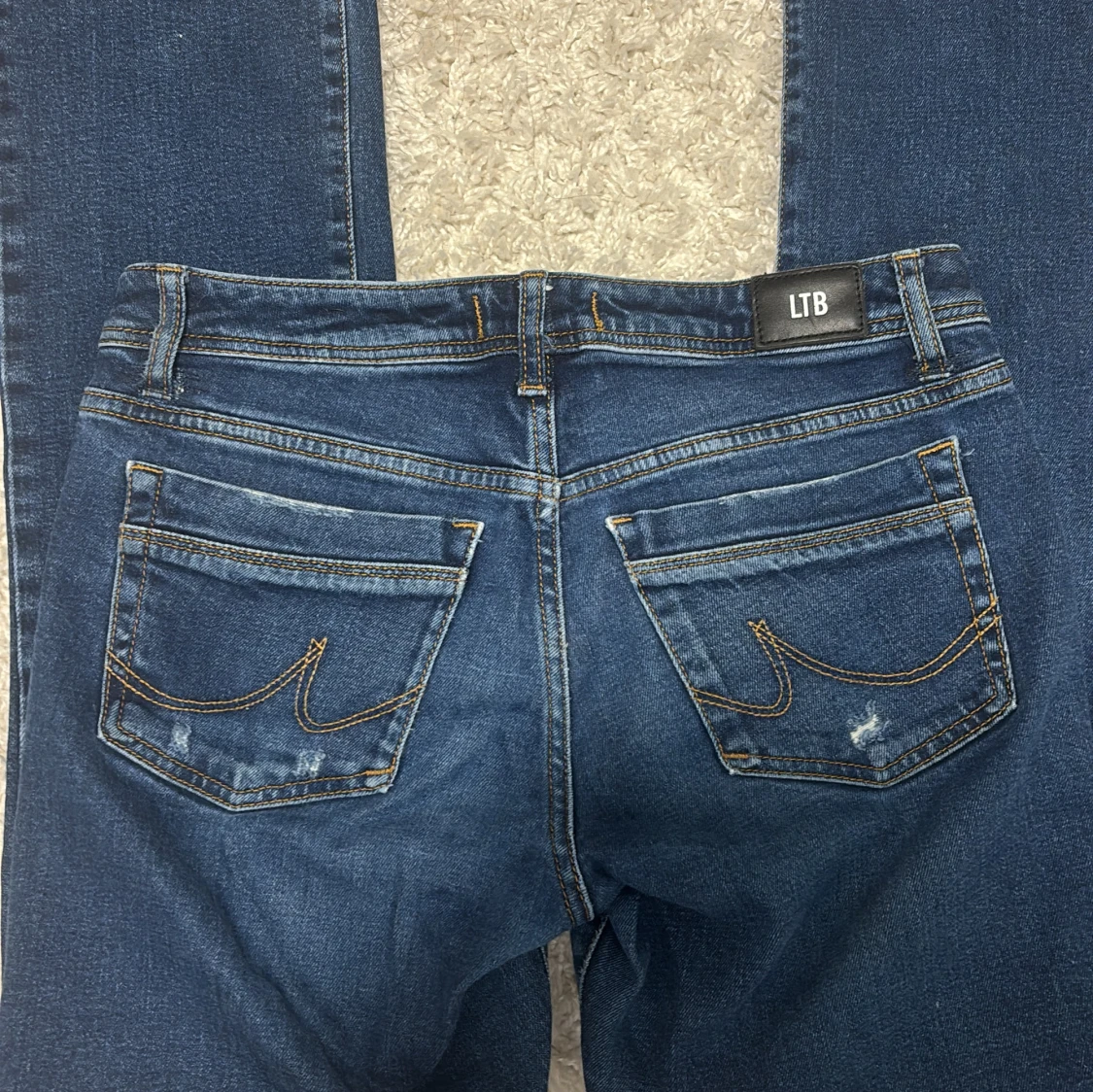Snygga lågmidjade mörkblå ltb jeans, mindre i storleken skulle uppskatta till en 27/34 köptes dock i 28/36. Jätte fint skick, tryck gärna köp nu💞