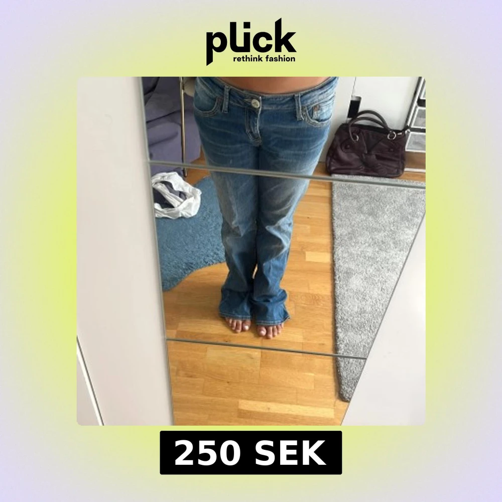 Säljer ett par blåa bootcut jeans pågrund av att de är för stora, storlekarna är midjemått rakt över:41cm midjehöjd:20cm innerbenslängd:85cm💗 står ingen storlek men de är runt 29/30w