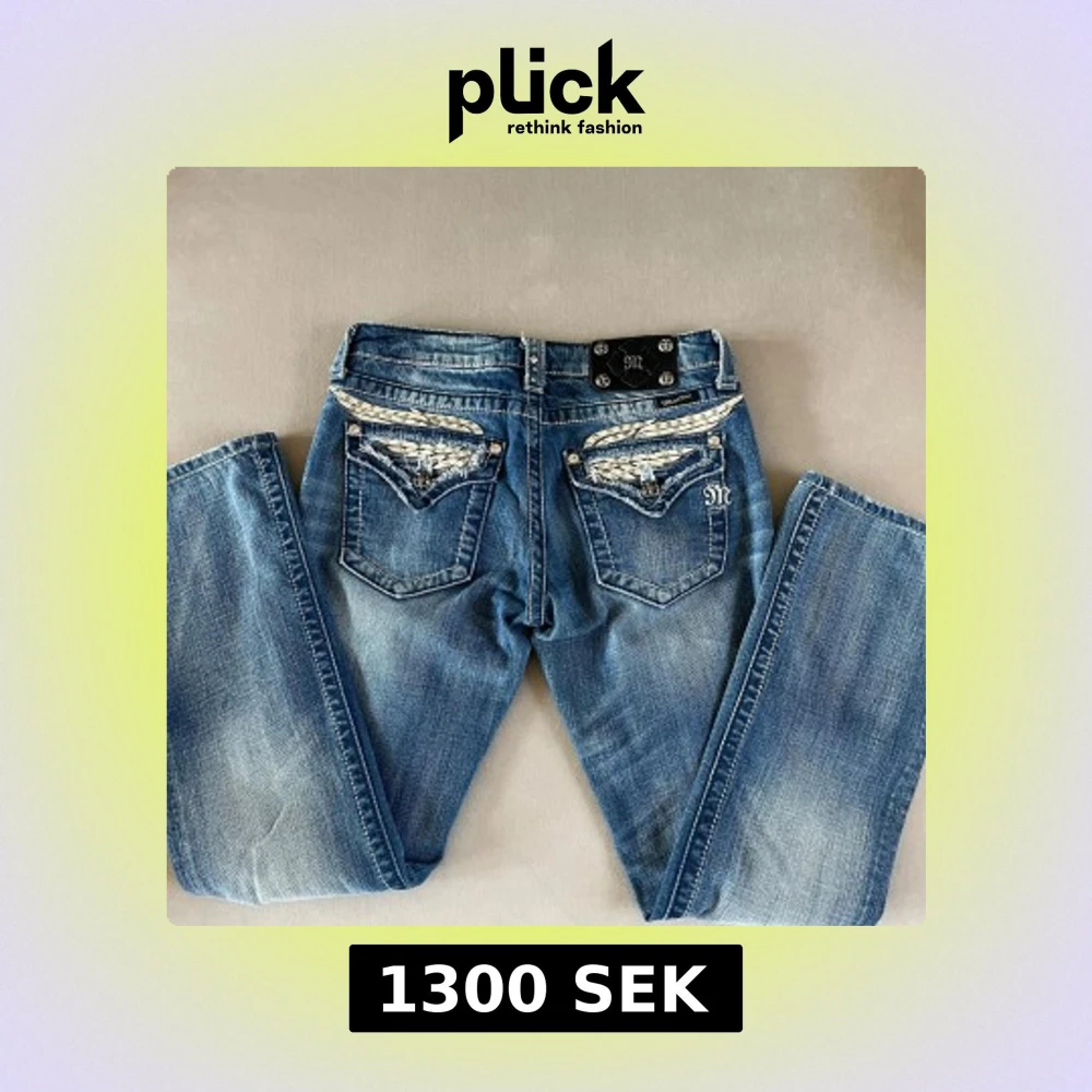 Blå Miss Me Bootcut Jeans - Perfekta Vingar för Din Stil! Midjemått höftsöm till höftsöm: Cirka 38cm. Letar du efter jeans som sticker ut och ger dig en unik look? Då är dessa Miss Me bootcut jeans något för dig! Med sina snygga detaljer och bekväma passform kommer de snabbt att bli en favorit i din garderob. Skick: Använda ett fåtal gånger, i jättebra skick! 📏 Storlek: W28. Kontakta mig om du är intresserad eller har frågor!😊