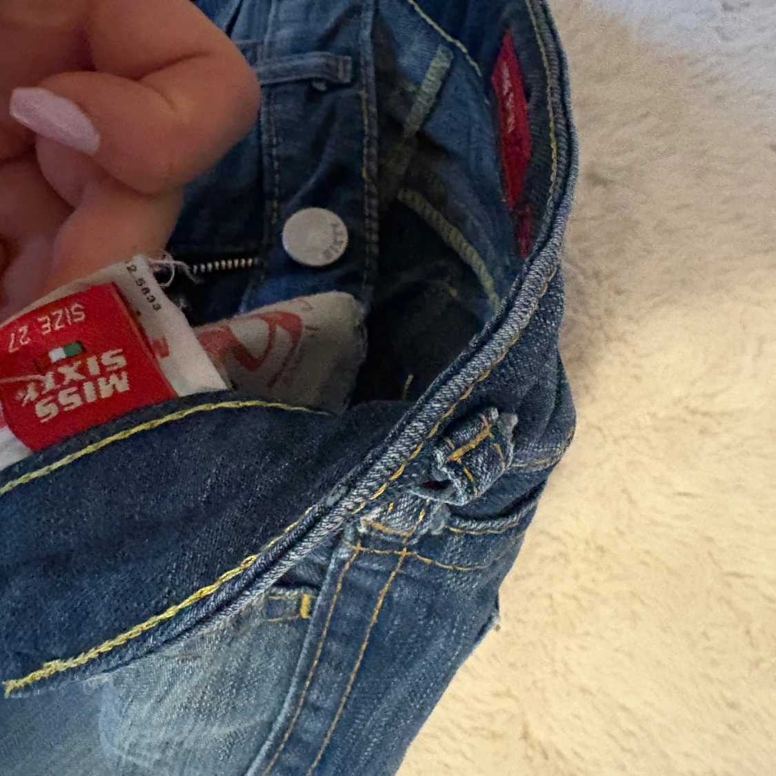 Snygga blå jeans från Miss Sixty som är bootcut och låg midjade. Superbra skick, köpte de på plick men var lite små så säljer vidare🩷