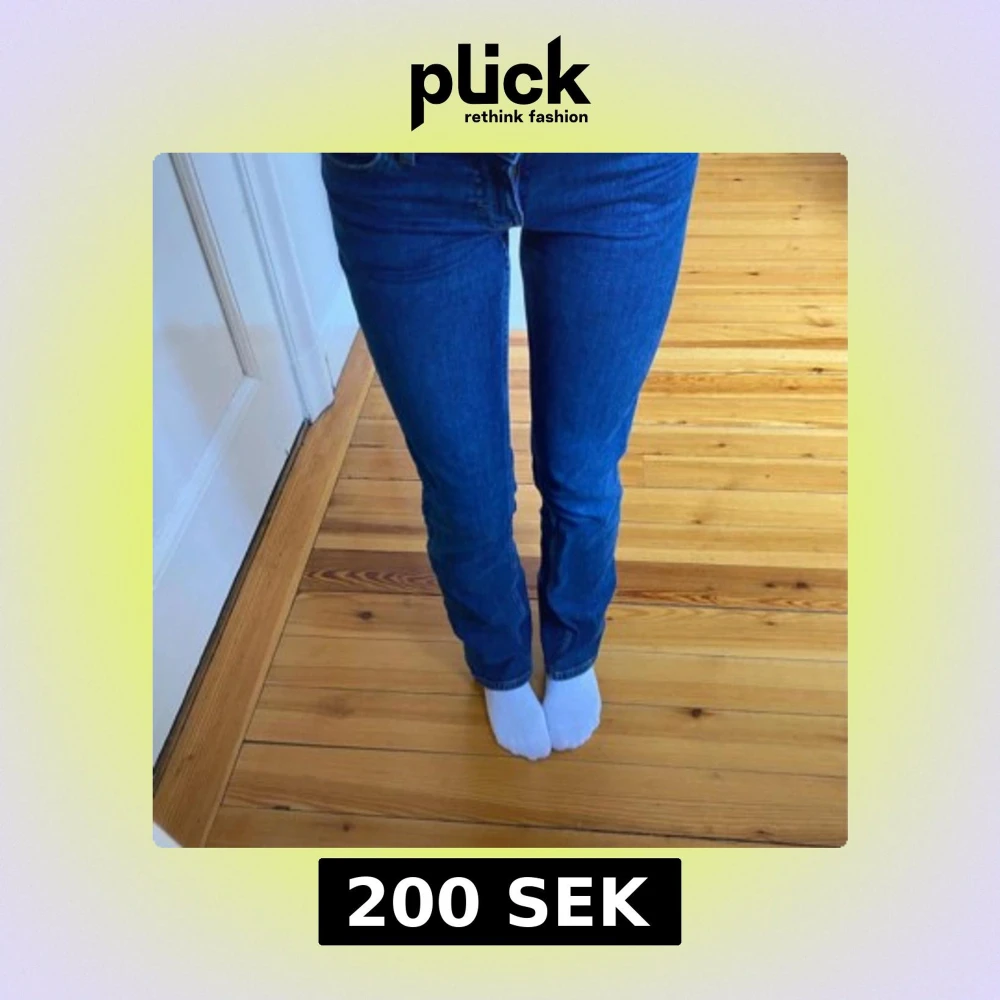 Snygga blå jeans från Monki med bootcut-snitt och klassisk femficksdesign. Jeansen har hög midja och är gjorda i mjukt denimtyg med en mörkblå tvätt. Perfekta för dig som gillar en tidlös och clean look.