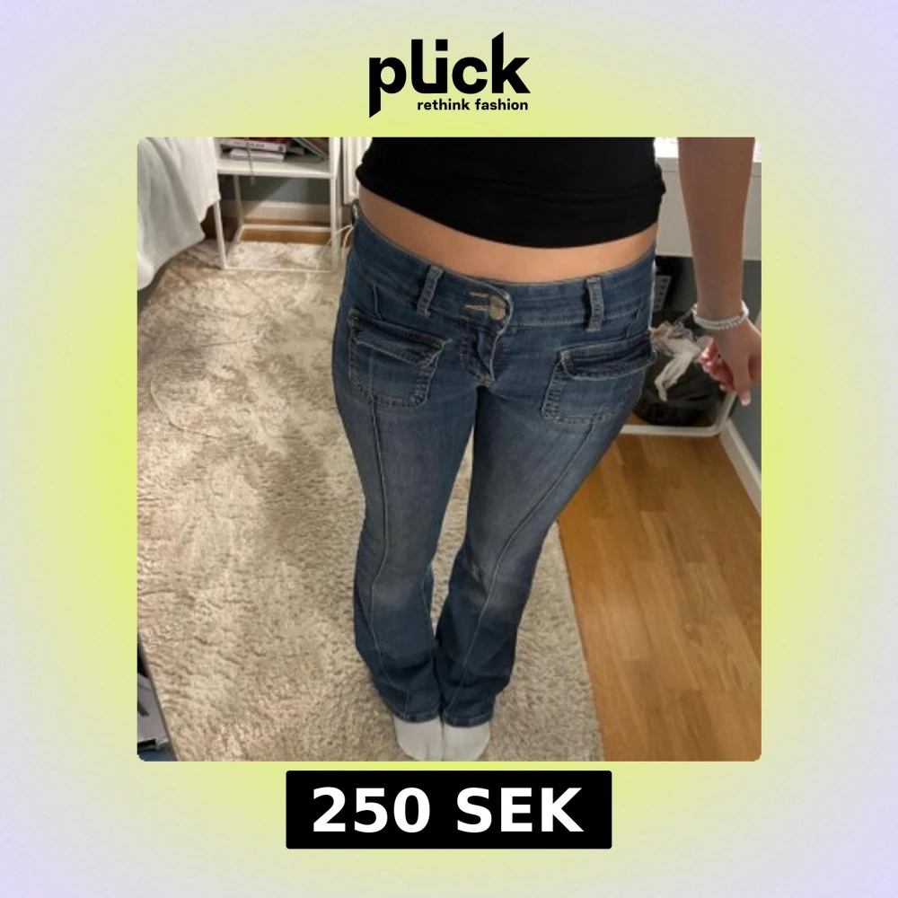 Snygga blå jeans från Nelly med bootcut och låg midja.💗 Jeansen har markerade sömmar där fram och stora fickor framtill med vikfickor. Lite slitna längst ner men inget man märker💗💗