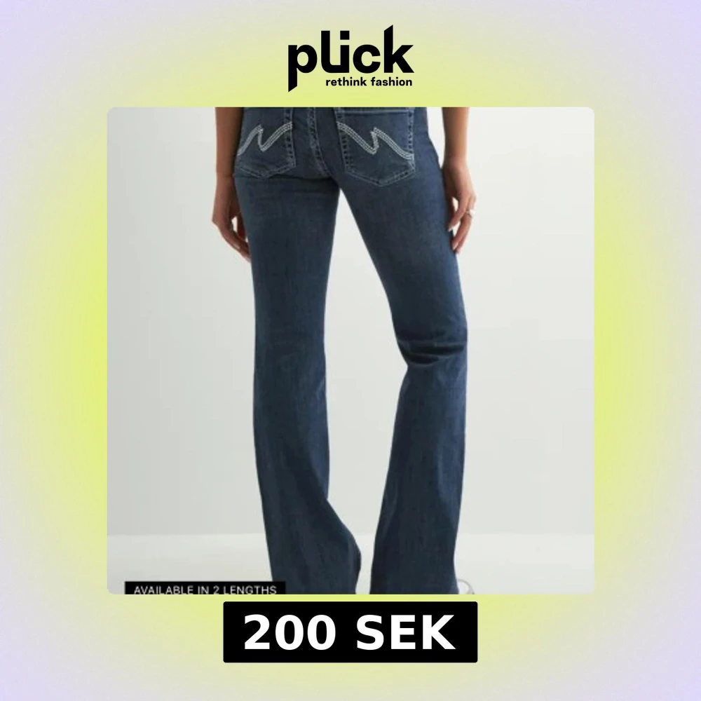 Snygga blå bootcut jeans från Nelly med klassisk femficksdesign och kontraststickningar på bakfickorna. Jeansen har låg midja och är tillverkade i mjukt denim med stretch för skön passform. Jeansen är i mycket bra skick. Däremot är de upplagda passar mig perfekt som är ännu 1,55 🩷 därav priset, kom gärna med prisförslag