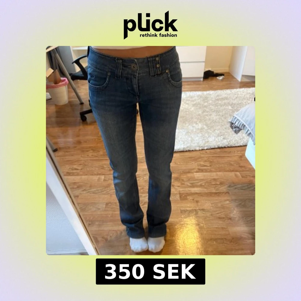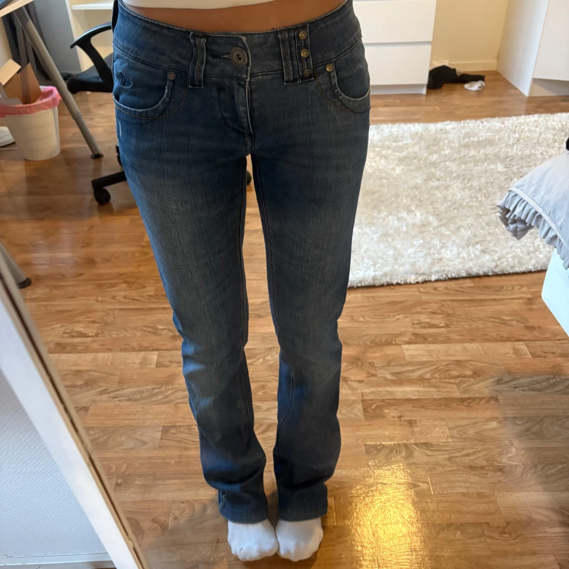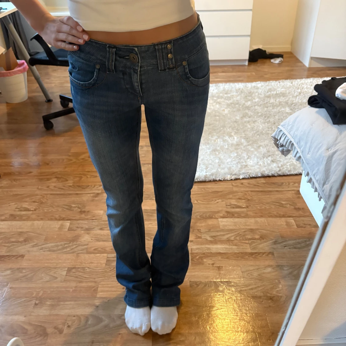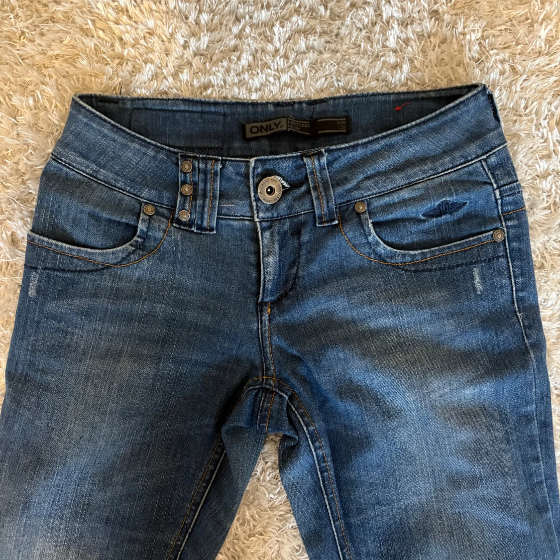 Snygga blå jeans från ONLY med bootcut-modell och klassisk femficksdesign. Jeansen har låg midja, raka ben med lätt utsvängning och detaljerade sömmar. Tillverkade i mjukt denimtyg med lite stretch för skön passform.
