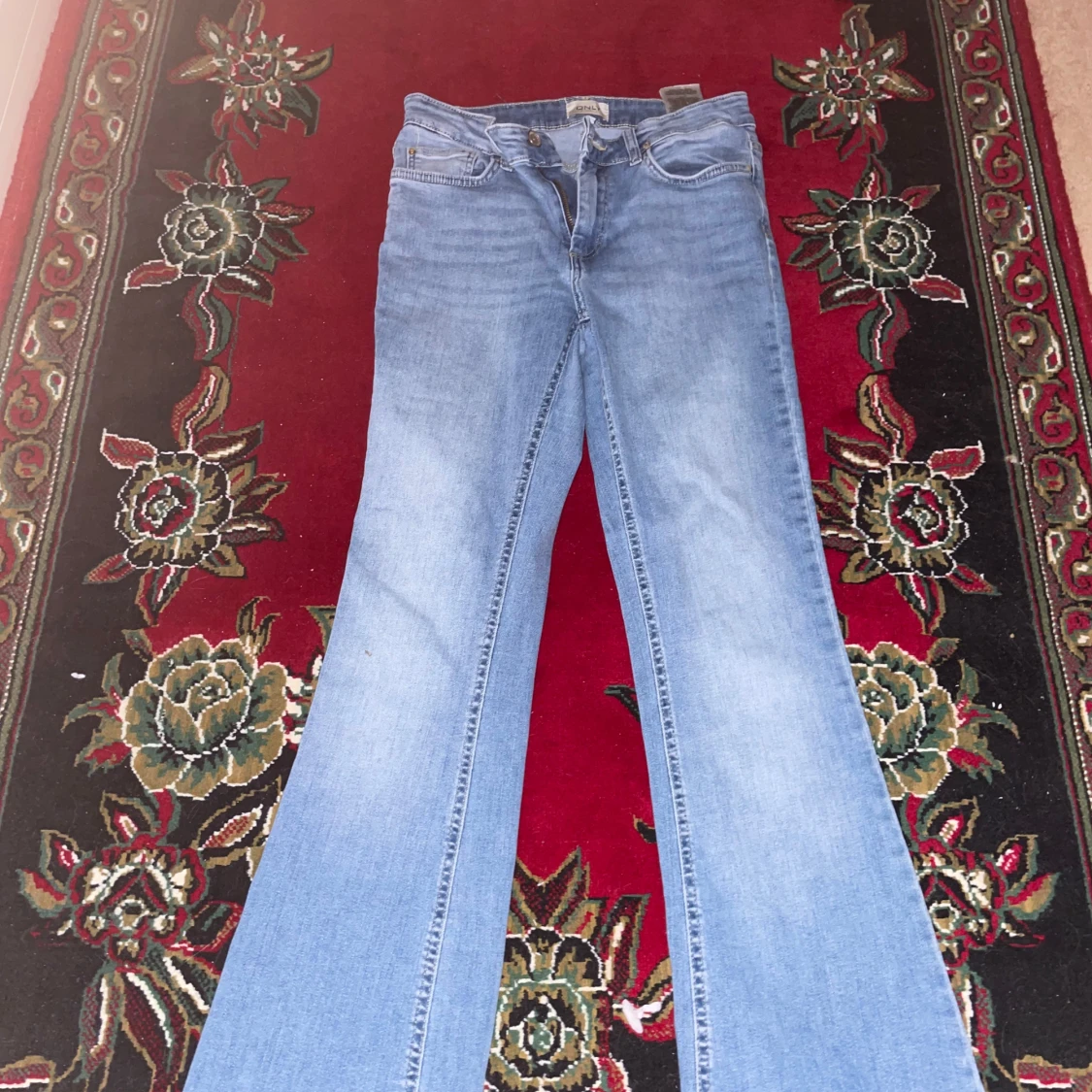 Snygga blå bootcut jeans från ONLY i storlek M. Perfekta för en avslappnad stil med en klassisk bootcut passform. Tillverkade i denim med en bekväm midwaist.