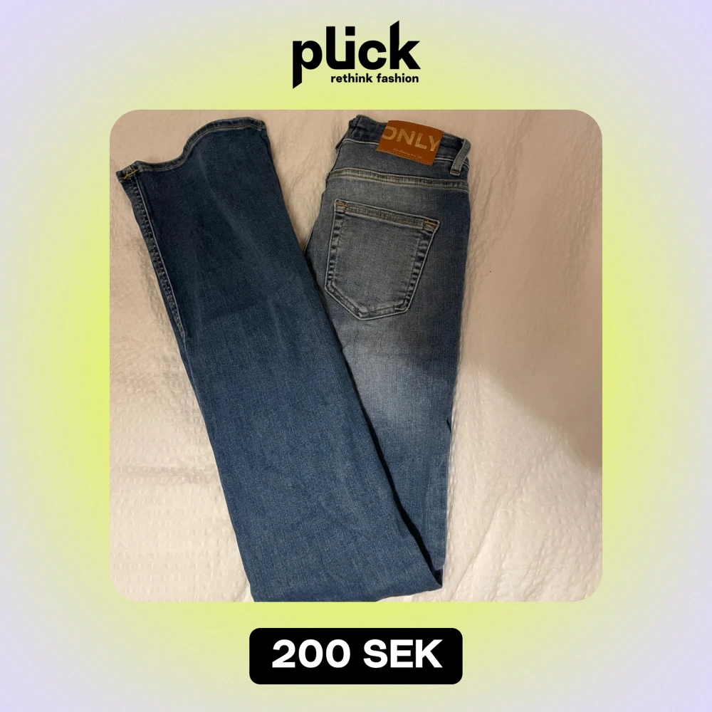 Säljer ett par snygga blå bootcut jeans från ONLY. De är i bra skick och är bara använda ett fåtal gånger. De är väldigt mjuka och stretchiga och passar till allt. Det är storlek 34/s men passar upp till 38 eftersom de är så stretchiga. Frakten ingår inte i priset, köparen står för frakten💗💗
