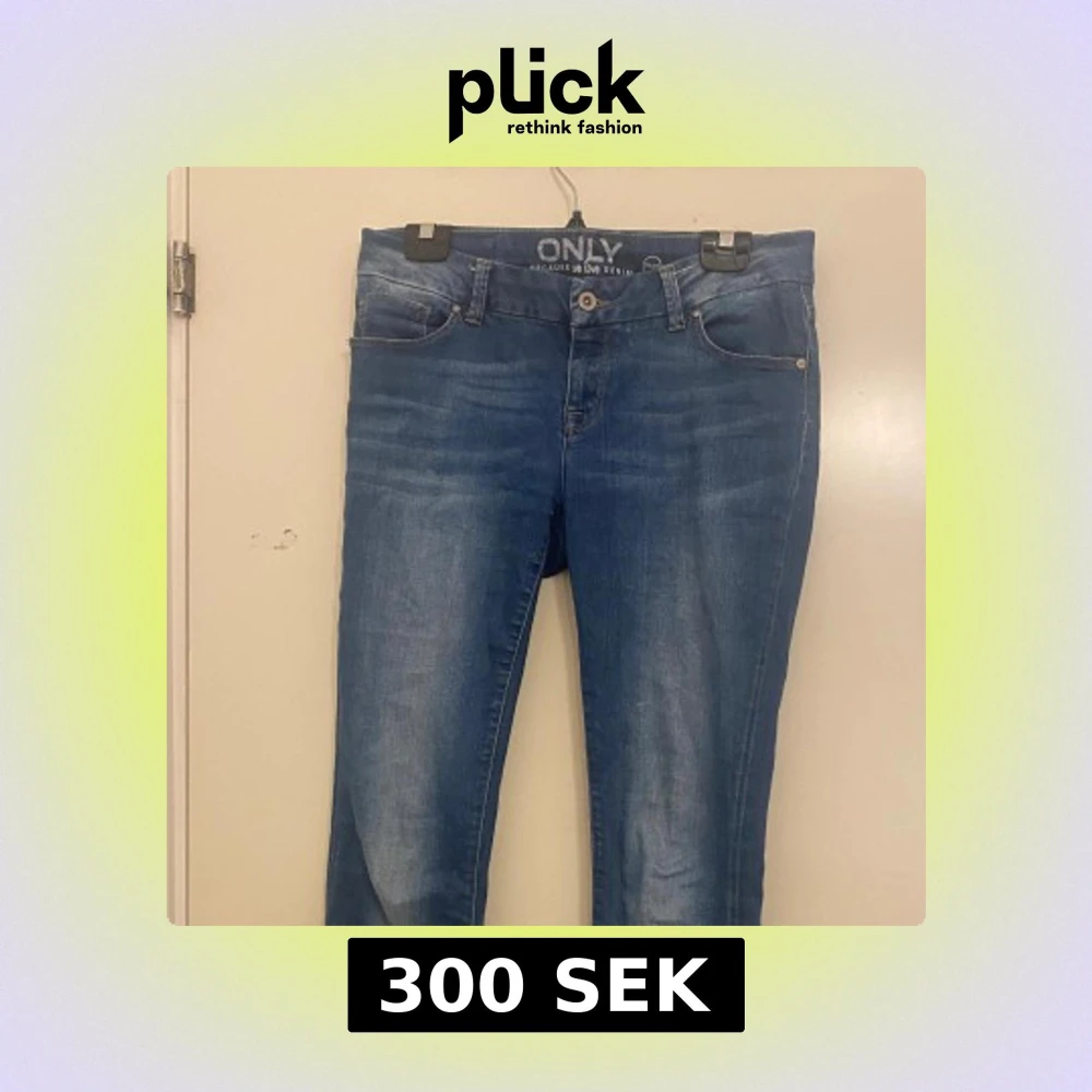 Säljer ett par klassiska blå bootcut jeans från ONLY med fem fickor och normal passform. Jeansen har snygga slitningar och en lätt utsvängd benslut. Perfekta till vardags och enkla att matcha med olika toppar. Storlek 31/32! Skriv om du har frågor! Priset kan diskuteras