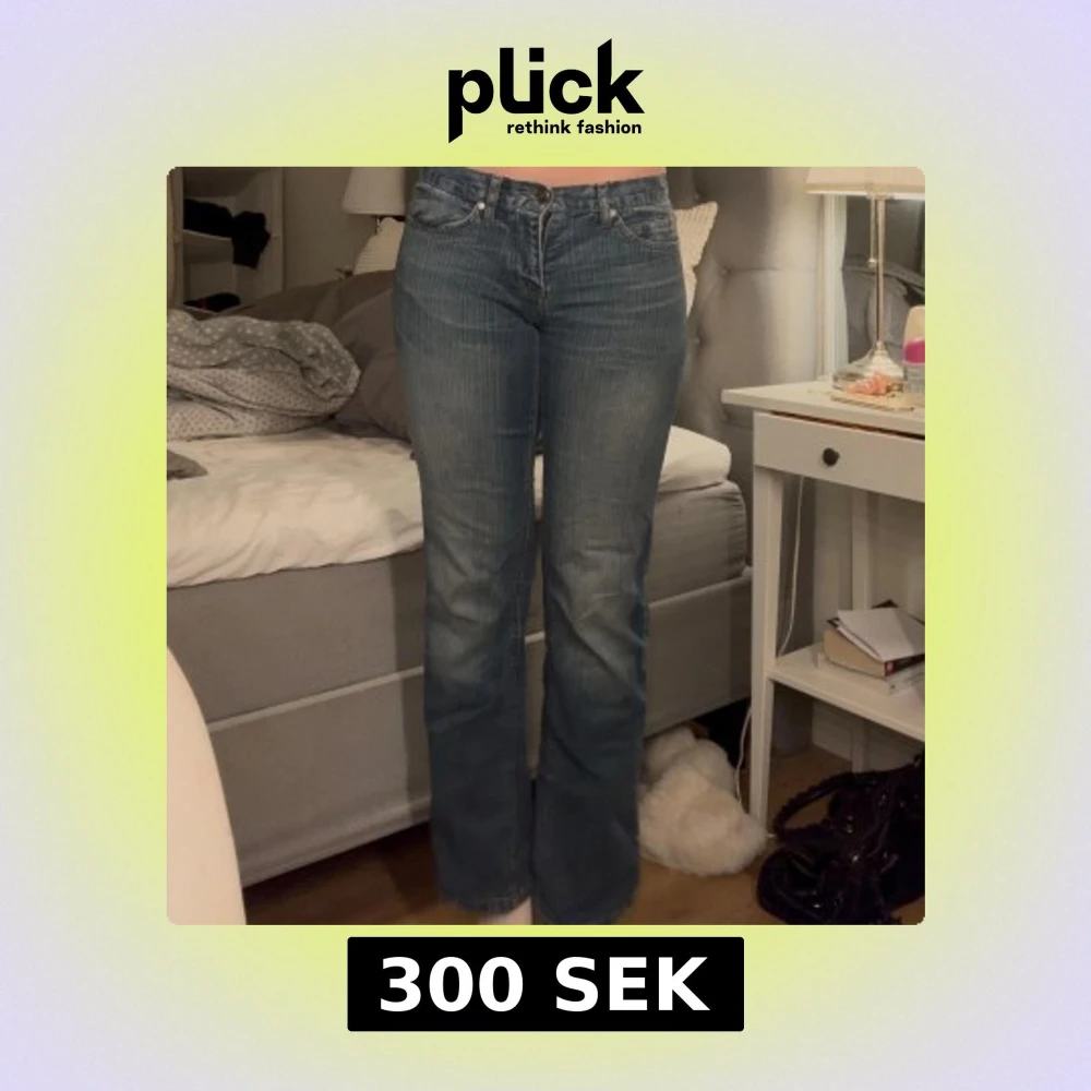 Snygga blå bootcut jeans från Only med klassisk femficksdesign. Jeansen har en låg midja och en bekväm passform som framhäver figuren. Perfekta för en avslappnad stil. Priset kan diskuteras!