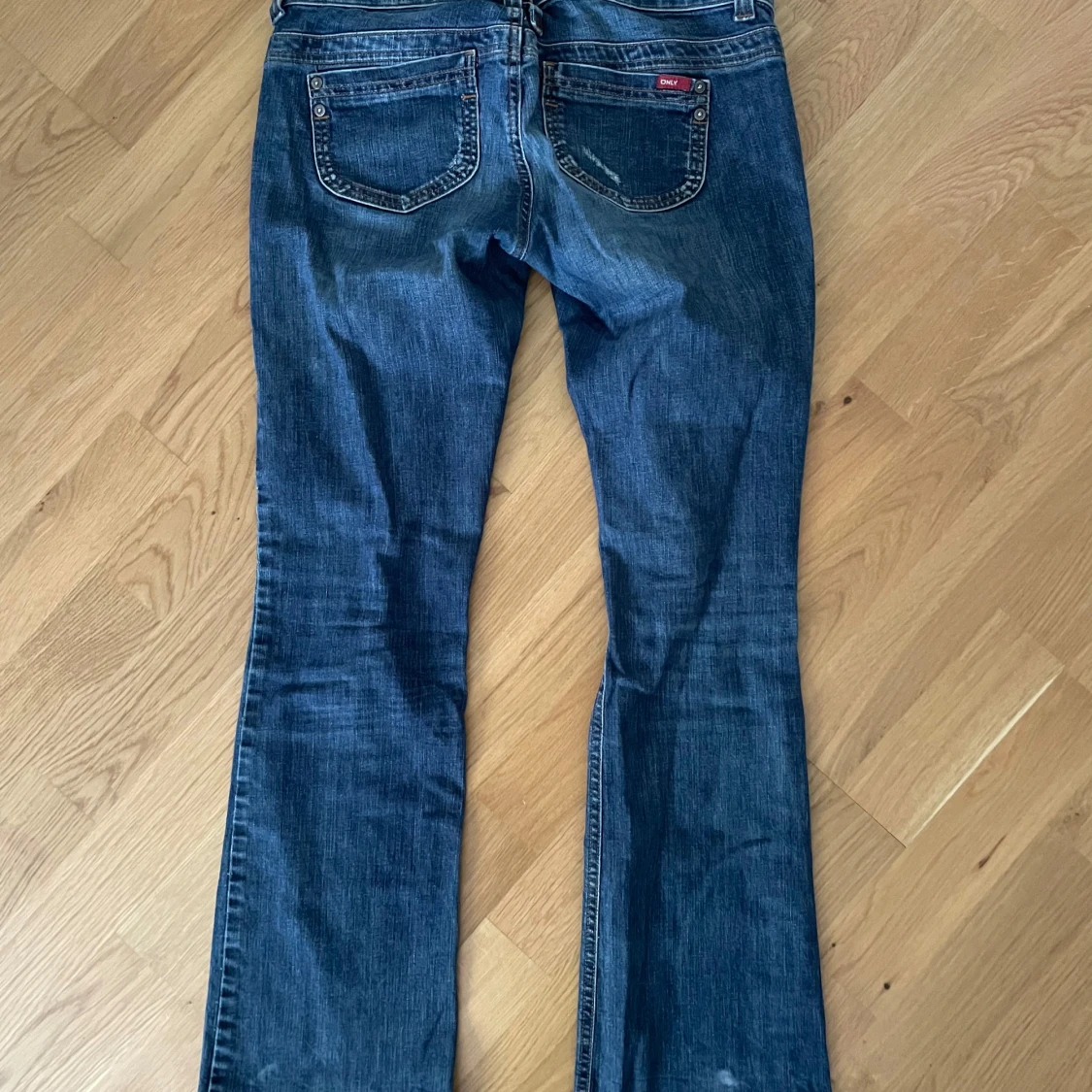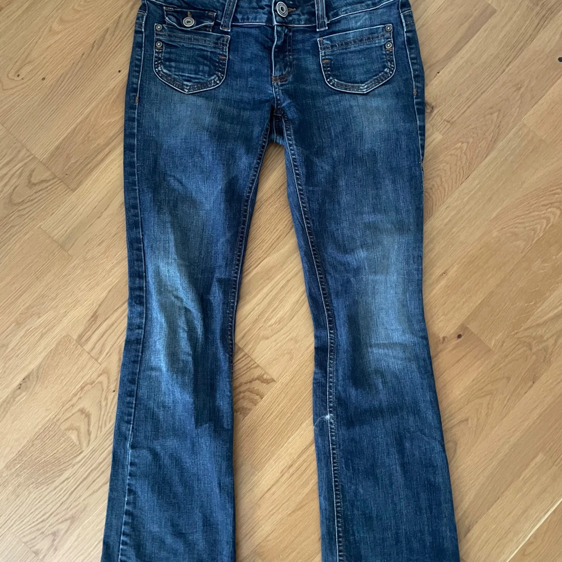 Snygga blå jeans från ONLY i storlek 38/32 med bootcut passform och låg midja. Klassisk femficksmodell med slitningar och kontrastsömmar. Jeansen är i stretchigt denim och har coola detaljer vid fickorna. Perfekta för dig som gillar en avslappnad men trendig look.
