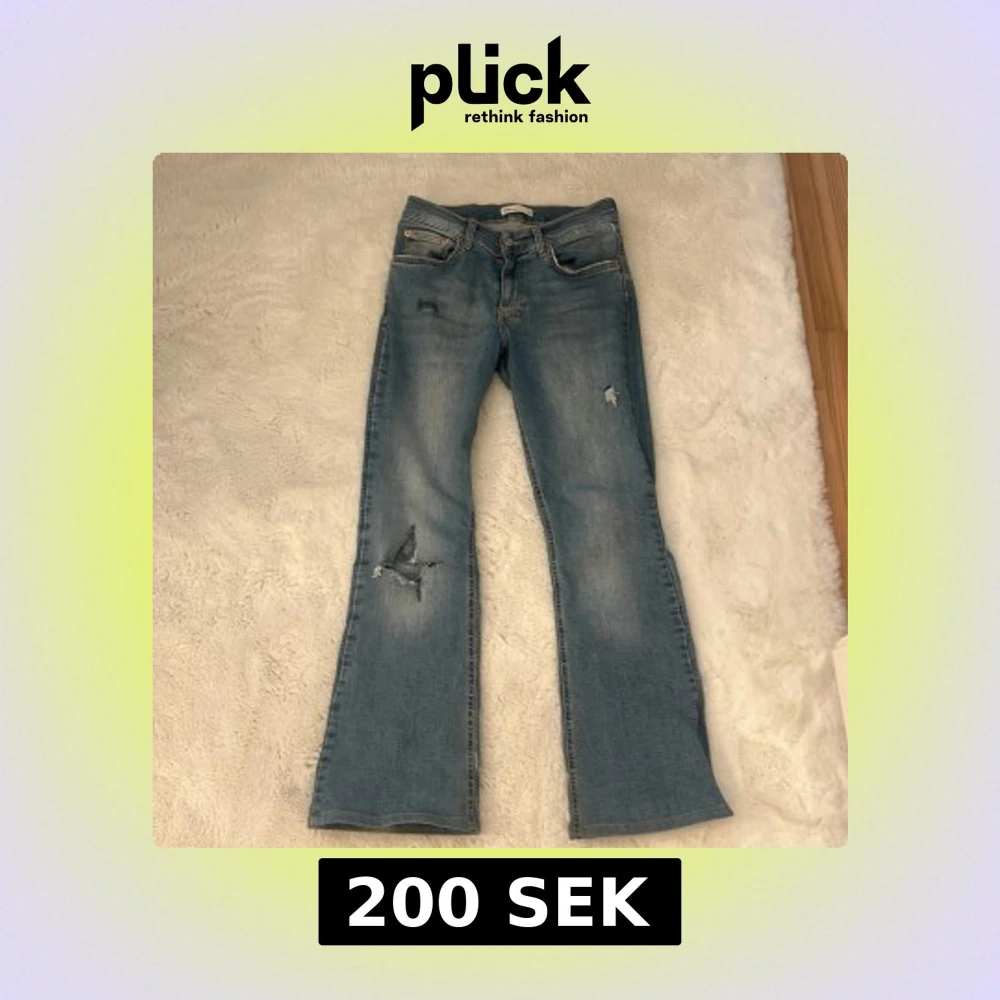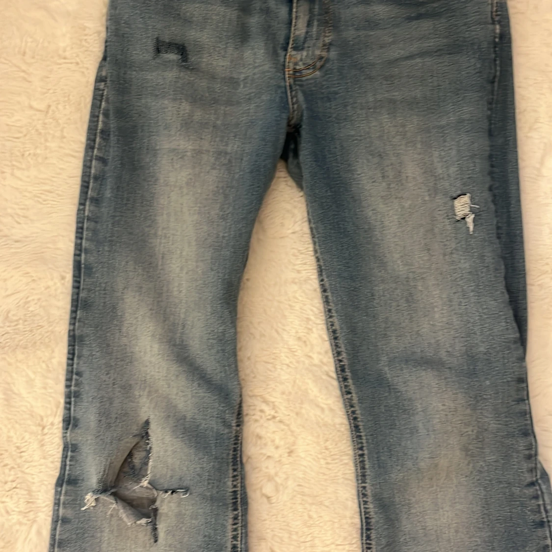 Snygga blå bootcut jeans från Perfect Jeans med slitna detaljer. De har en klassisk femficksdesign och en bekväm passform.