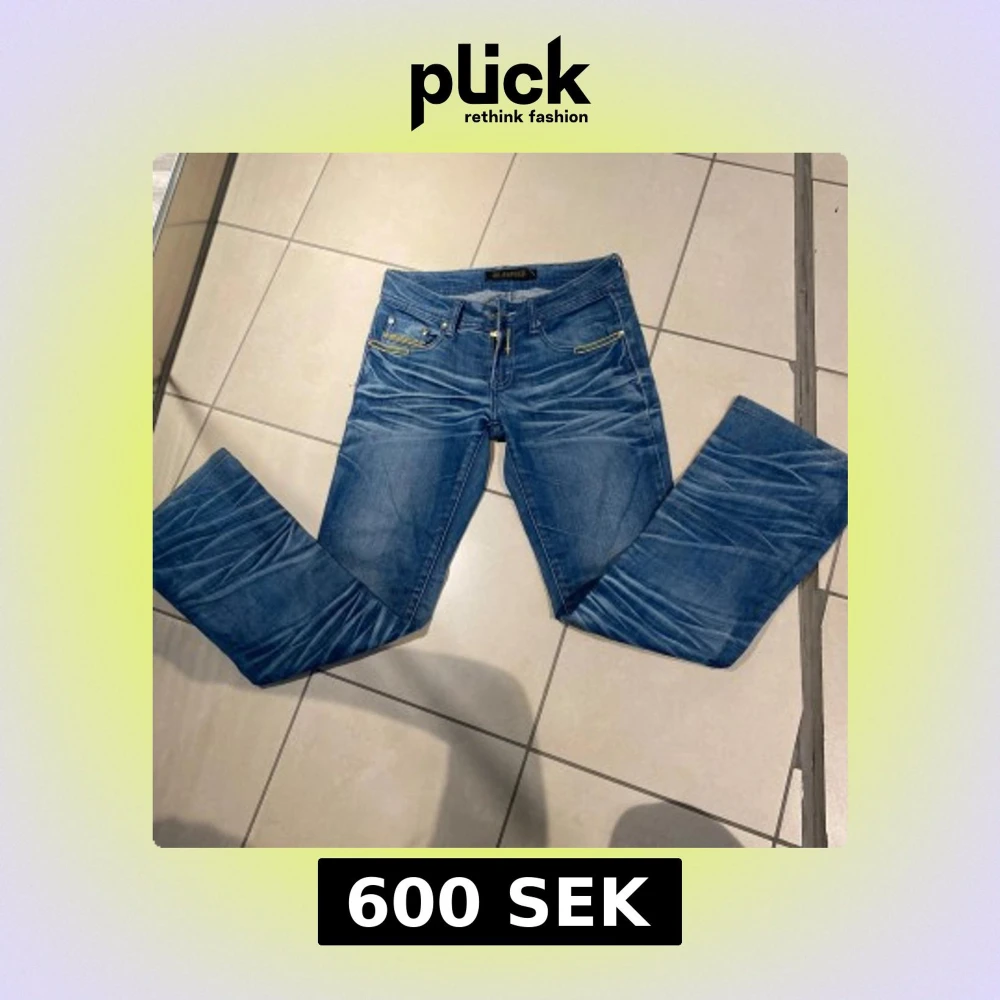 Snygga blå jeans från Redial i bootcut-modell med coola slitningar och kontrasterande gula detaljer vid fickorna. Klassisk femficksdesign och dragkedja framtill. Perfekta för dig som gillar en avslappnad men trendig look. Perfekt för sommaren 🌸