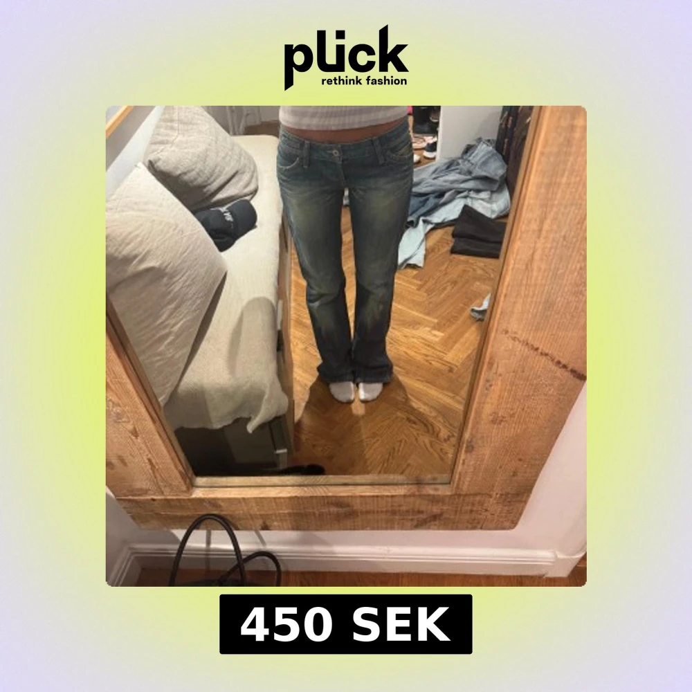 Säljer ett par klassiska blå bootcut jeans från Replay med normal passform. Jeansen har fem fickor, dragkedja och knapp framtill samt snygga detaljer på bakfickorna. Perfekta till vardags och lätta att matcha.