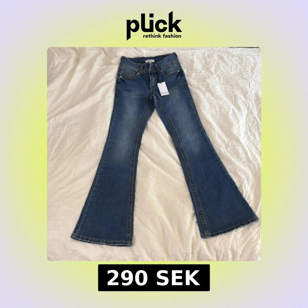 Snygga blå jeans från RYVLS med bootcut-modell och markerade kontrastsömmar. Klassisk femficksdesign med ficklock och knappar bak.