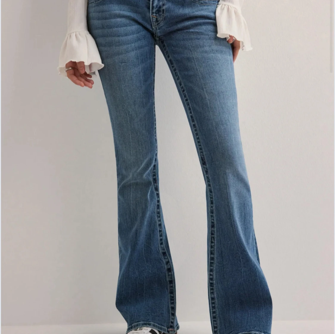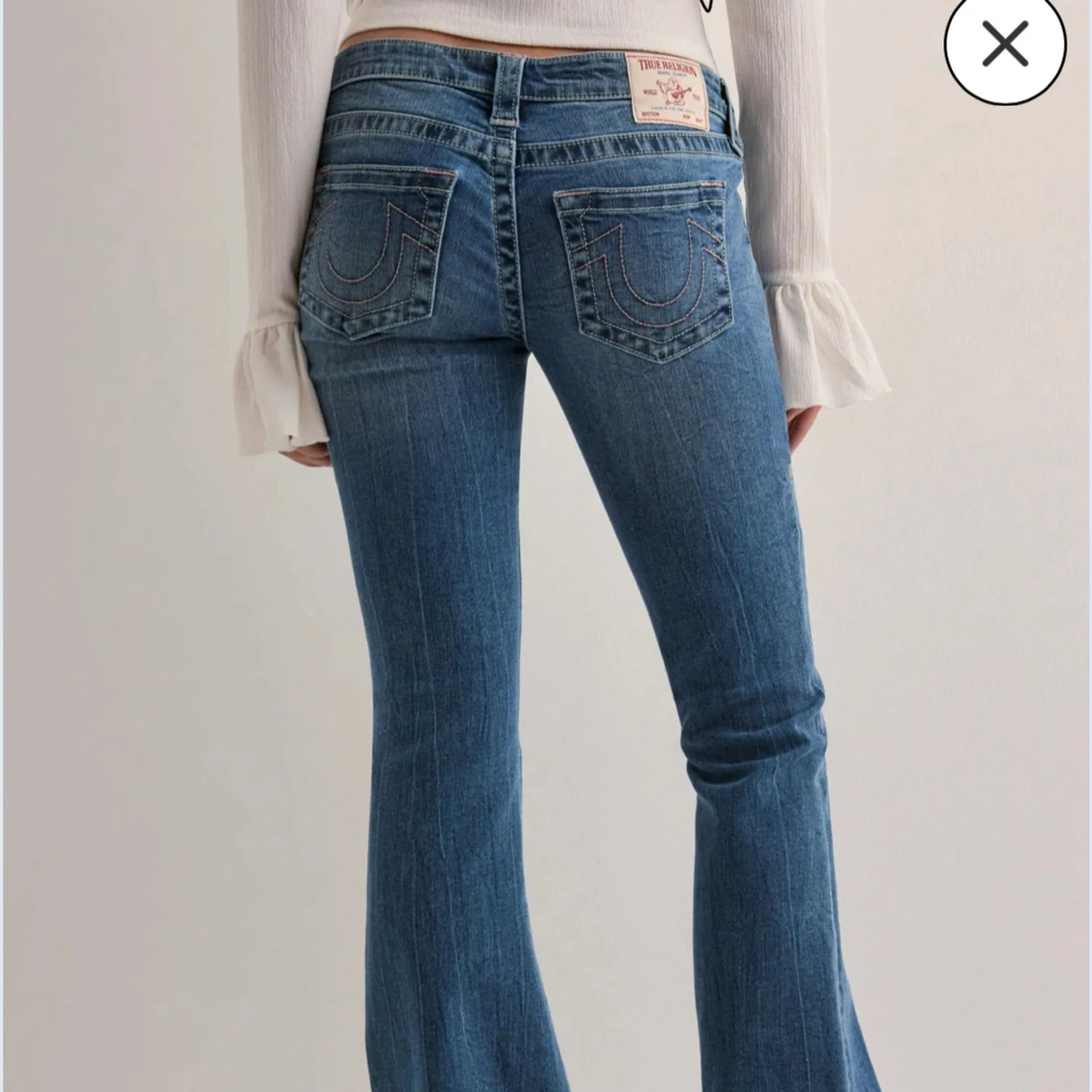 Snygga blå jeans från True Religion med klassisk bootcut-passform och ikoniska bakfickor med broderad detalj. Jeansen har normal midja och är tillverkade i ett mjukt denimtyg som ger en skön känsla. Perfekta för dig som gillar en tidlös och avslappnad look. Priset kan diskuteras vid snabb affär! Skriv för egna bilder
