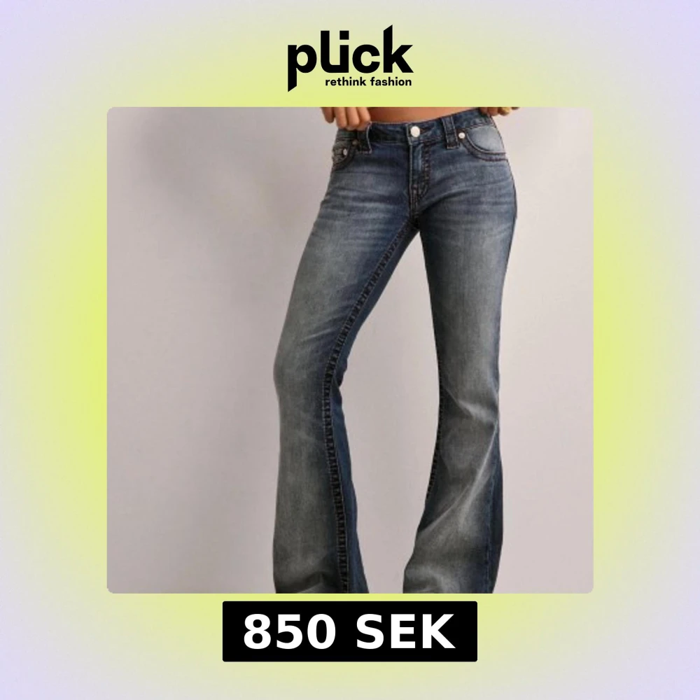 Snygga blå bootcut jeans från True Religion med klassiska kontrastsömmar och markerade bakfickor. Jeansen har låg midja och är tillverkade i slitstarkt denim med lätt tvättad look. Perfekta för dig som gillar en retro vibe och vill sticka ut.